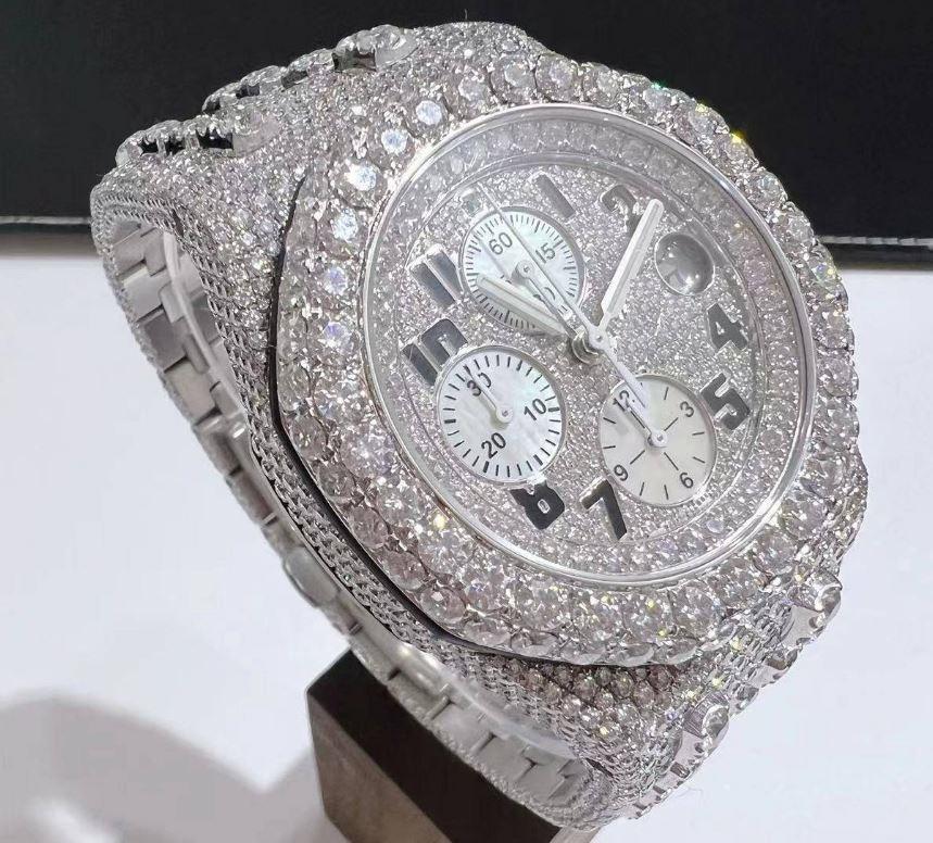 Reloj mecánico automático de diamante de moissanita blanca VVS1 para adultos Busto completo único Reloj de acero inoxidable de 39MM Esfera de cristal