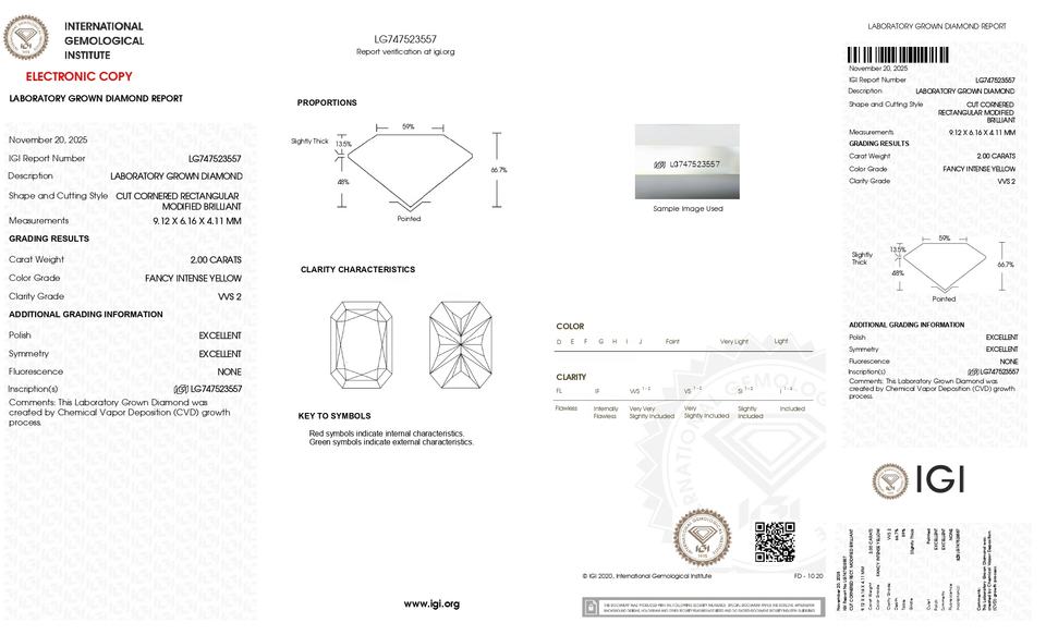 Número de Modelo:Radiant CVD 2.00 CT. Fancy Vivid Yellow-VVS2