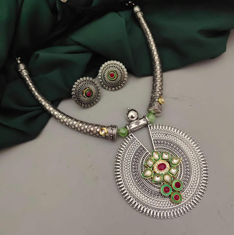 Nombre del producto:Vaani alemán plata tribal Hasli collar pendientes conjunto