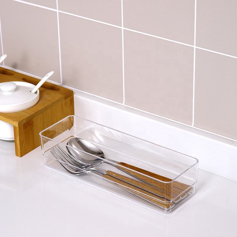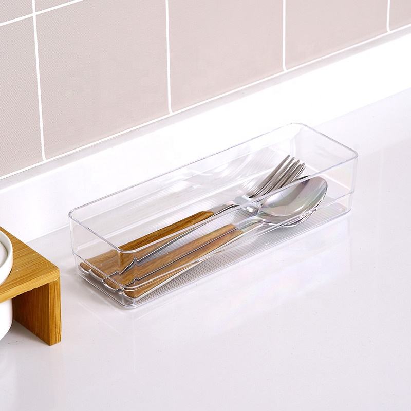 Vacane transparente PS plástico apilable multifunción joyería cajón divisores para cocina baño bandeja de almacenamiento escritorio cajón profundo
