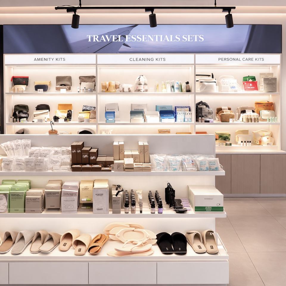 Antifaz, Artículos de tocador, Bruma para almohada, Crema facial, etc.