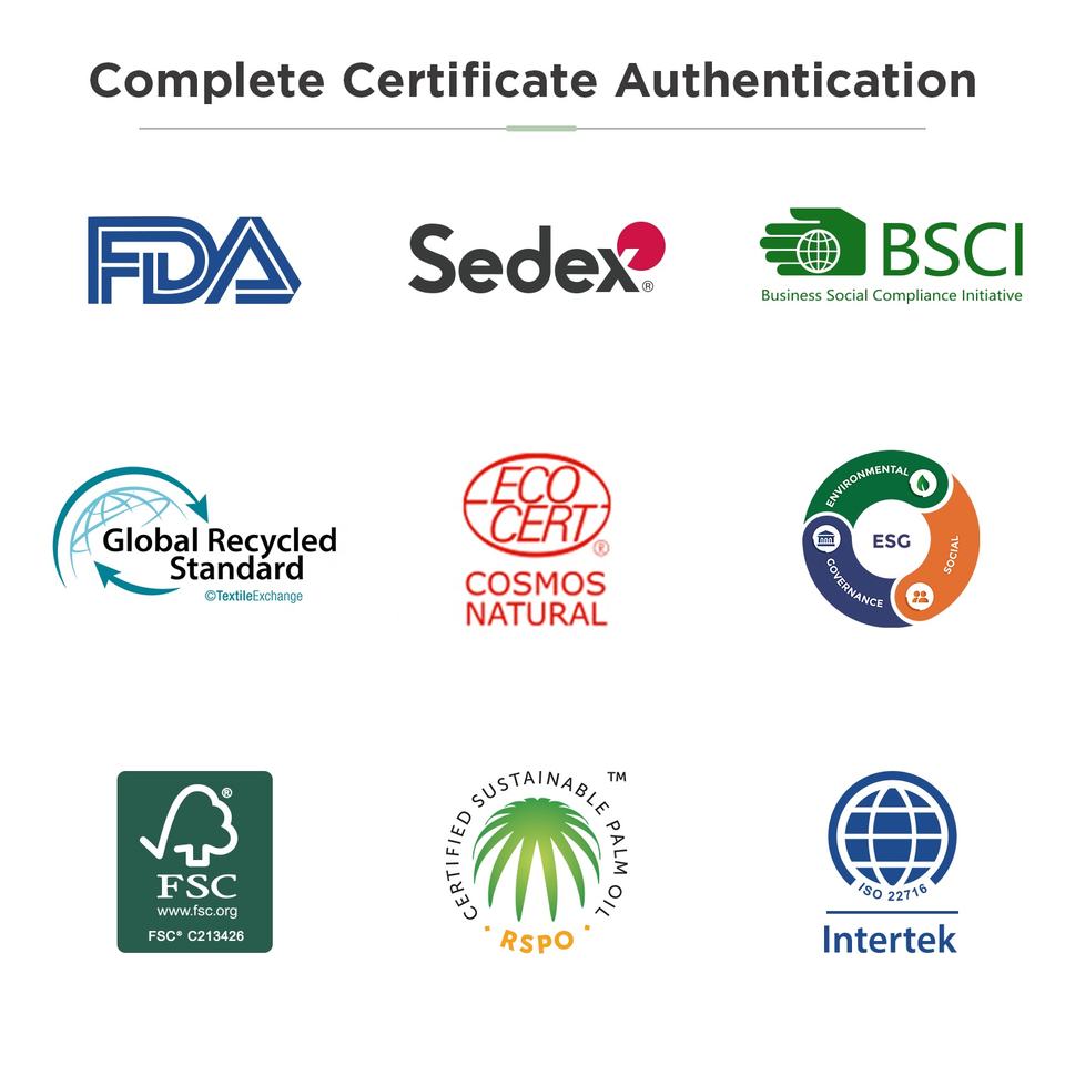 FSC/ OK COMPOSTO/ GMPC/ ISO9001/ ISO22716 / SEDEX/ GRS