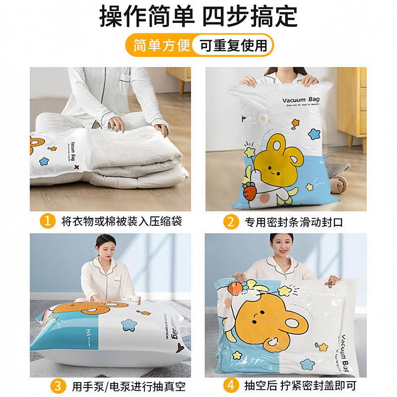 Bolsa de almacenamiento al vacío con diseño de conejo rectangular, organizador de ropa por compresión, reutilizable para mudanzas, embalaje de estudiantes