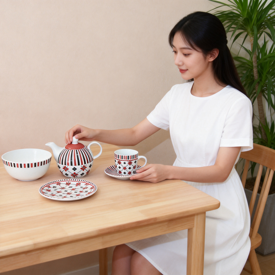 Juego de Vajilla de Porcelana con Diseño de Corazón de San Valentín, Juego de Vajilla de Cocina de Cerámica Bonito de HARVIT con Tetera, Taza de Café, Platillo