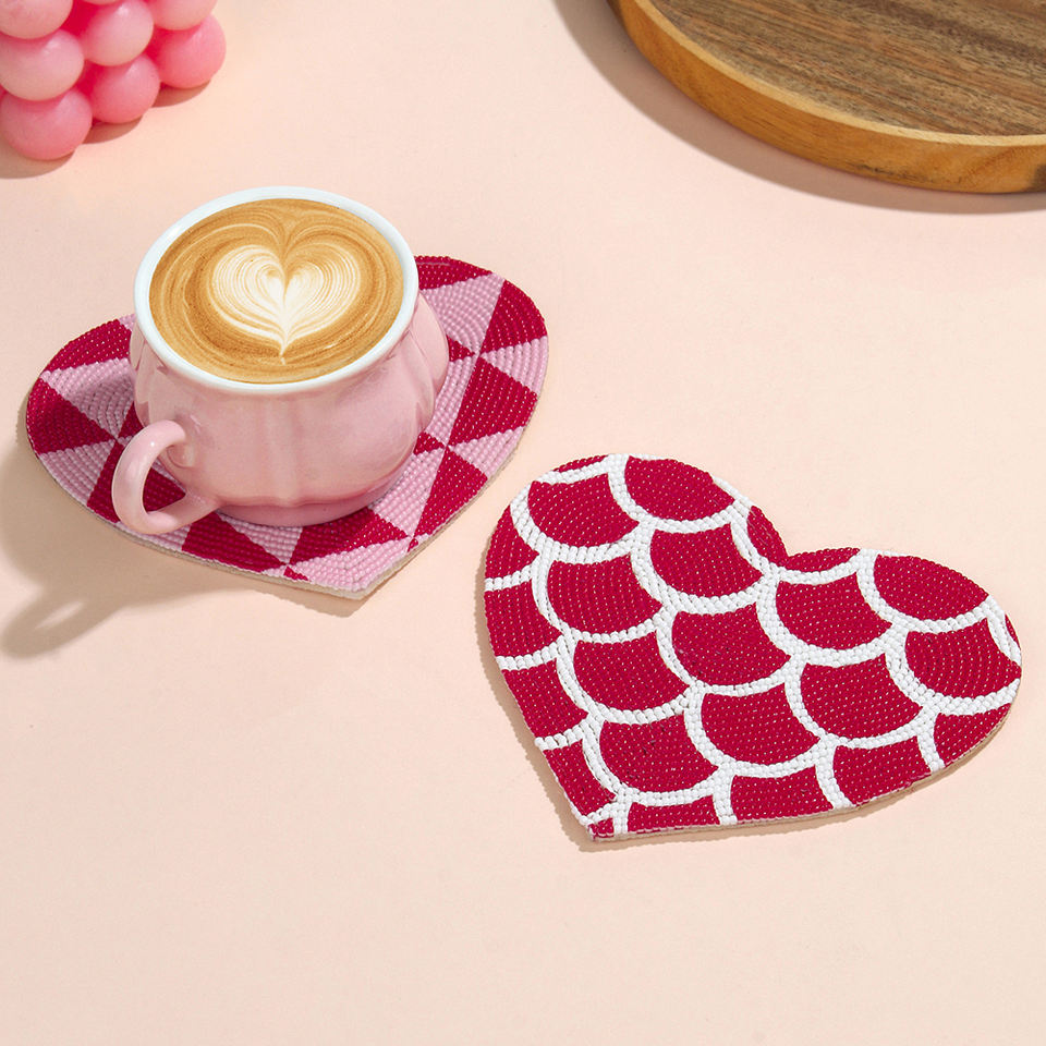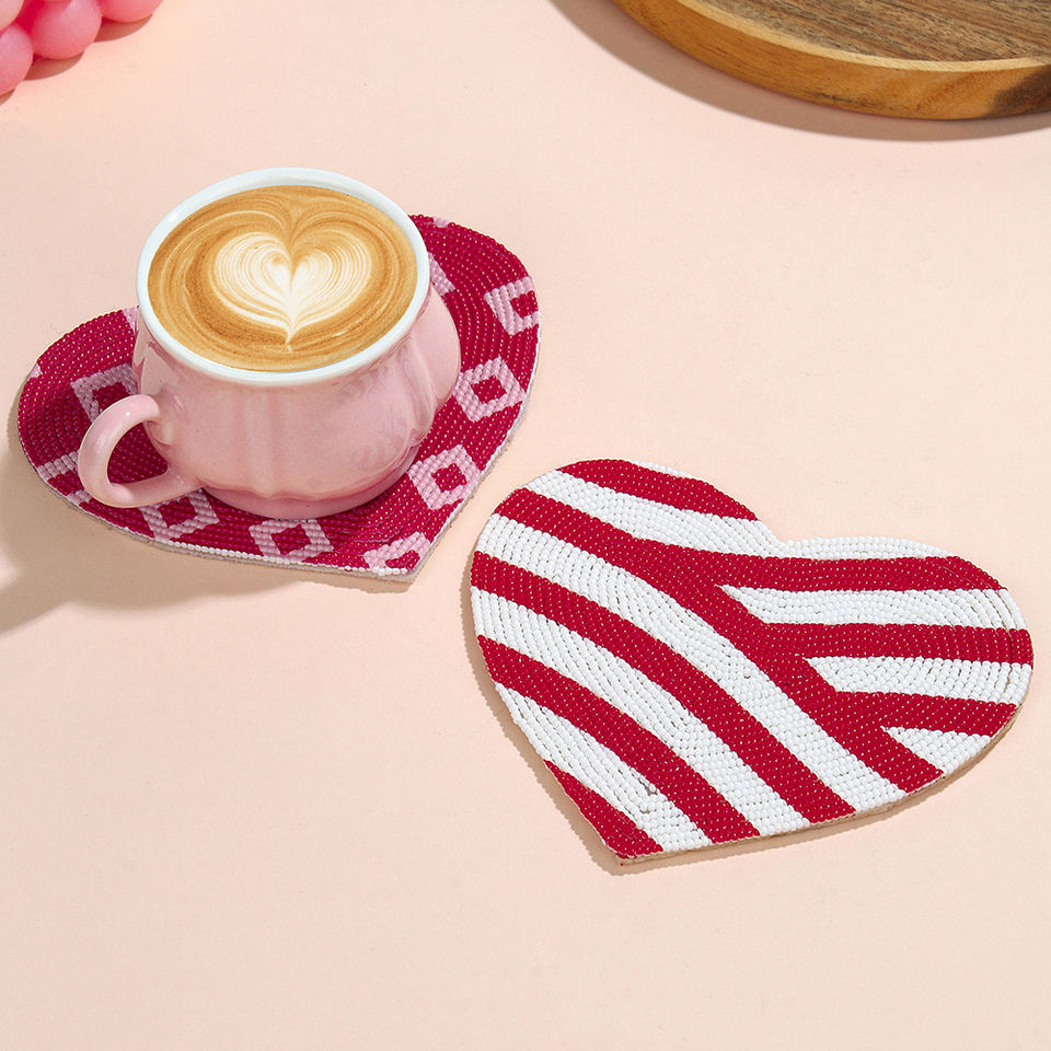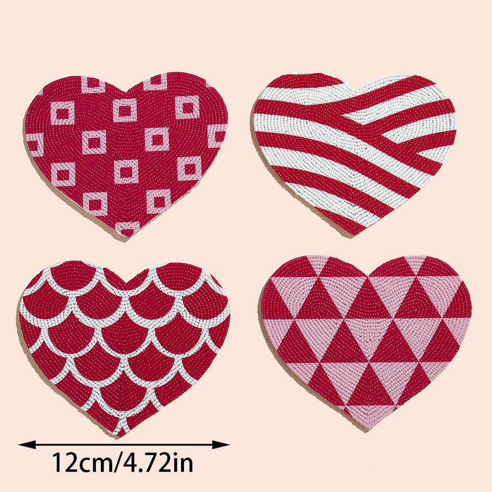 Posavasos de Cuentas de Vidrio con Patrón Geométrico Personalizado para el Día de San Valentín, Regalos Hechos a Mano en Forma de Corazón, Posavasos Personalizados para Bebidas