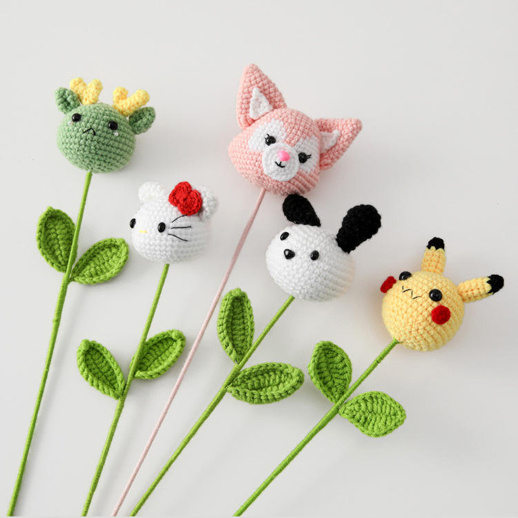 Día de San Valentín hecho a mano simulación lana ganchillo flor dibujos animados Animal ramo cerdo Panda conejo gatito muñeca Gif para niños