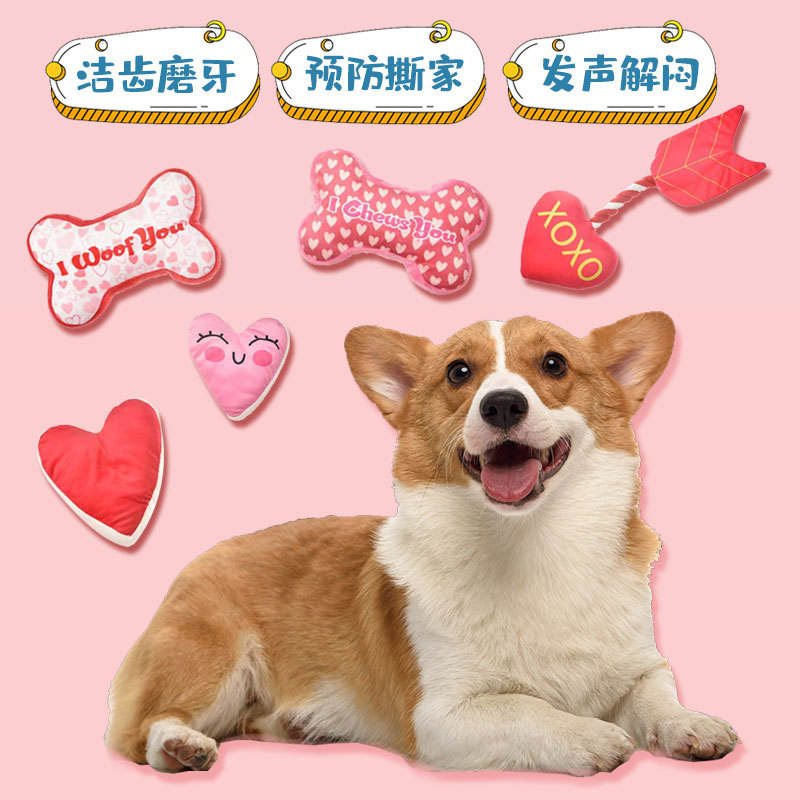 Serie del Día de San Valentín, limpieza de dientes de peluche para mascotas y juguetes resistentes a mordeduras para hacer sonidos, juguetes para perros de descompresión