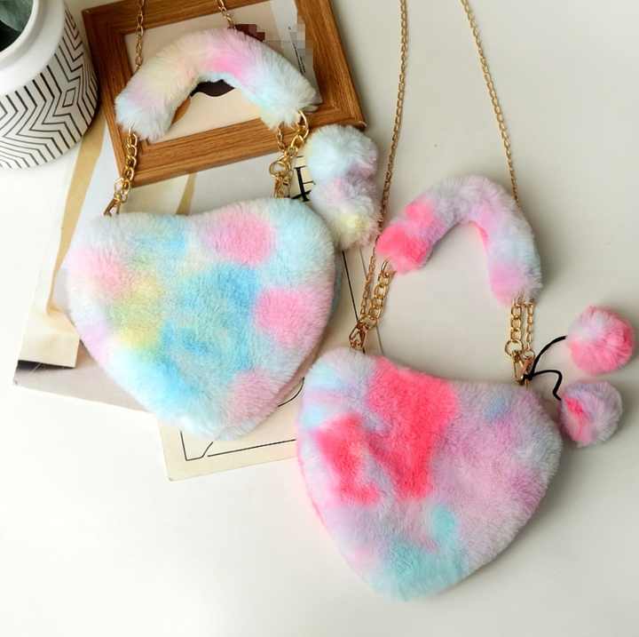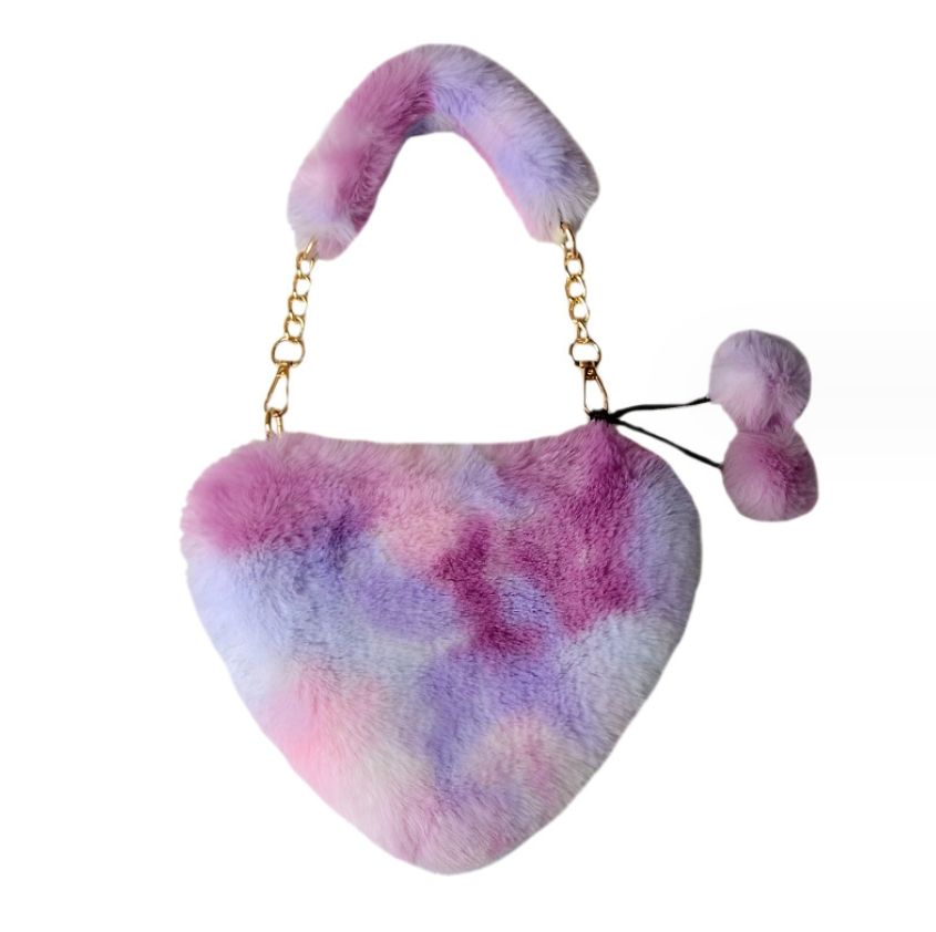 Regalo de San Valentín, nuevo bolso de mano de felpa, bolso de corazón de melocotón de felpa para mujer, bolso cruzado con cadena portátil, bolsos de piel sintética