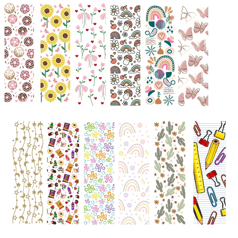 Precio de San Valentín Patrones de bolígrafo con purpurina personalizados UV DTF Pen Wraps impresiones para motel Motel marcapáginas Uv Dtf Pen Wraps