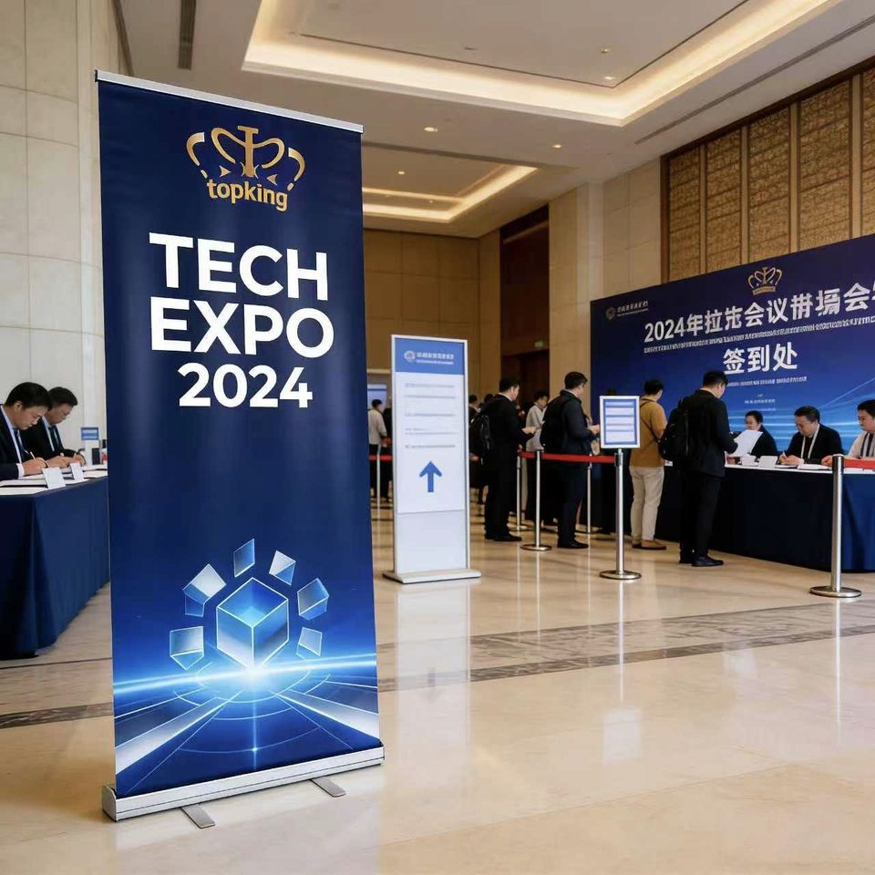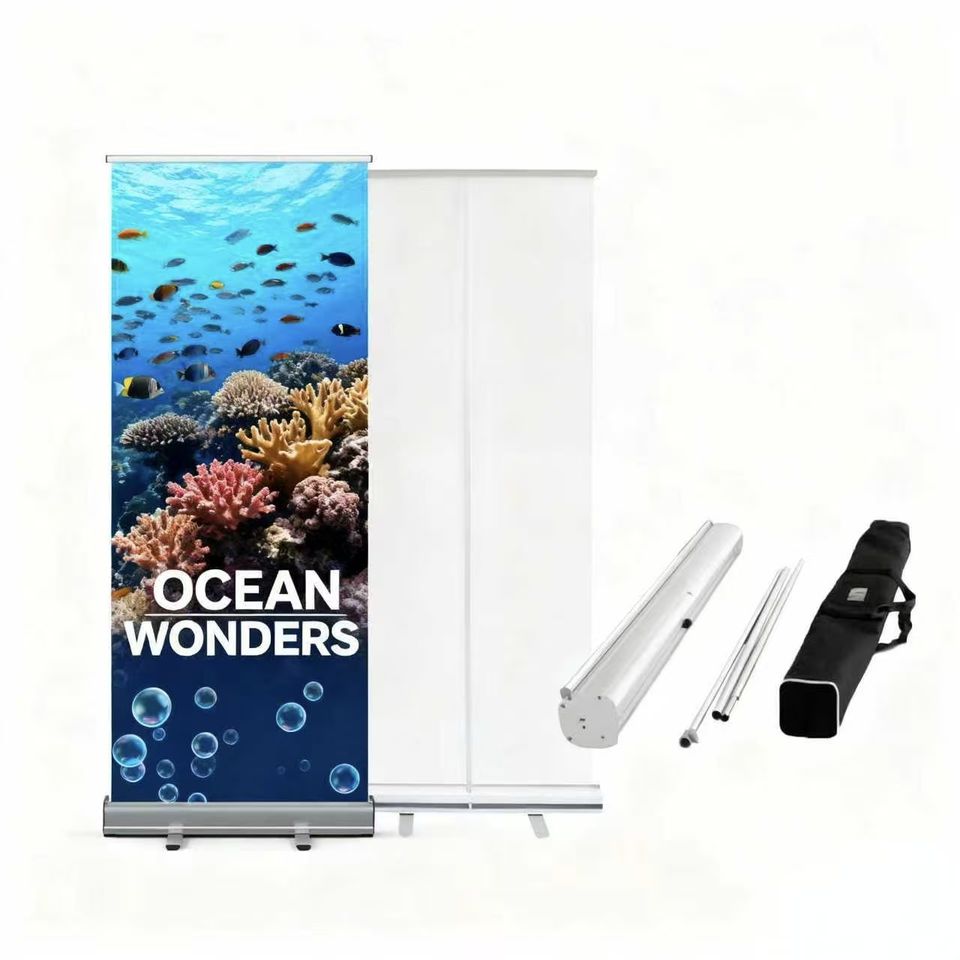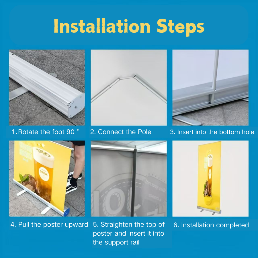 Expositor Portátil Enrollable de 2 kg, con Opciones de Patas Flexibles y Barra Superior para Adaptarse a Diversas Necesidades de Eventos
