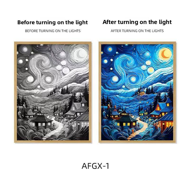Marco Decorativo de Madera Creativo con Diseño de Pintura de Luz Ecológica de la Serie Tinta del Cielo Estrellado de Van Gogh, para Exhibición en Pared
