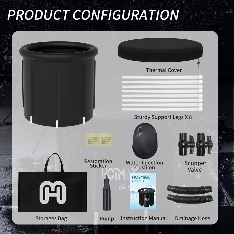 Vanace Bañera de Hielo Inflable de PVC con Logotipo Personalizado, 8 Varillas, para 1 Persona, 60 galones+, Portátil, para Exteriores, Agua Fría, Recuperación Deportiva, Uso Médico