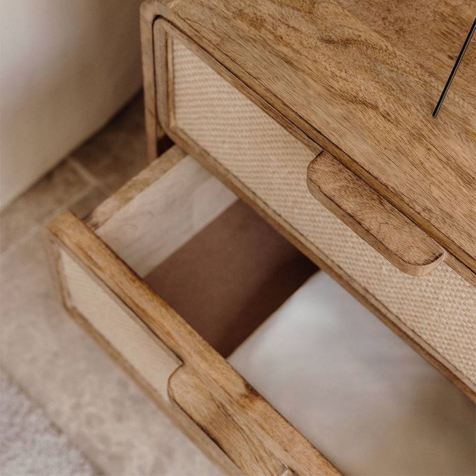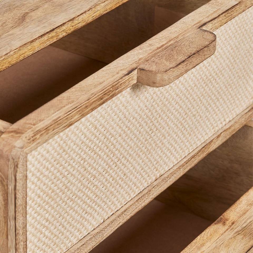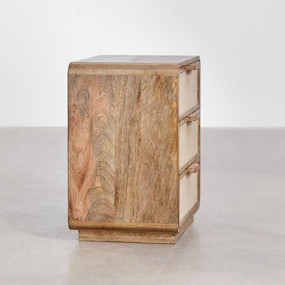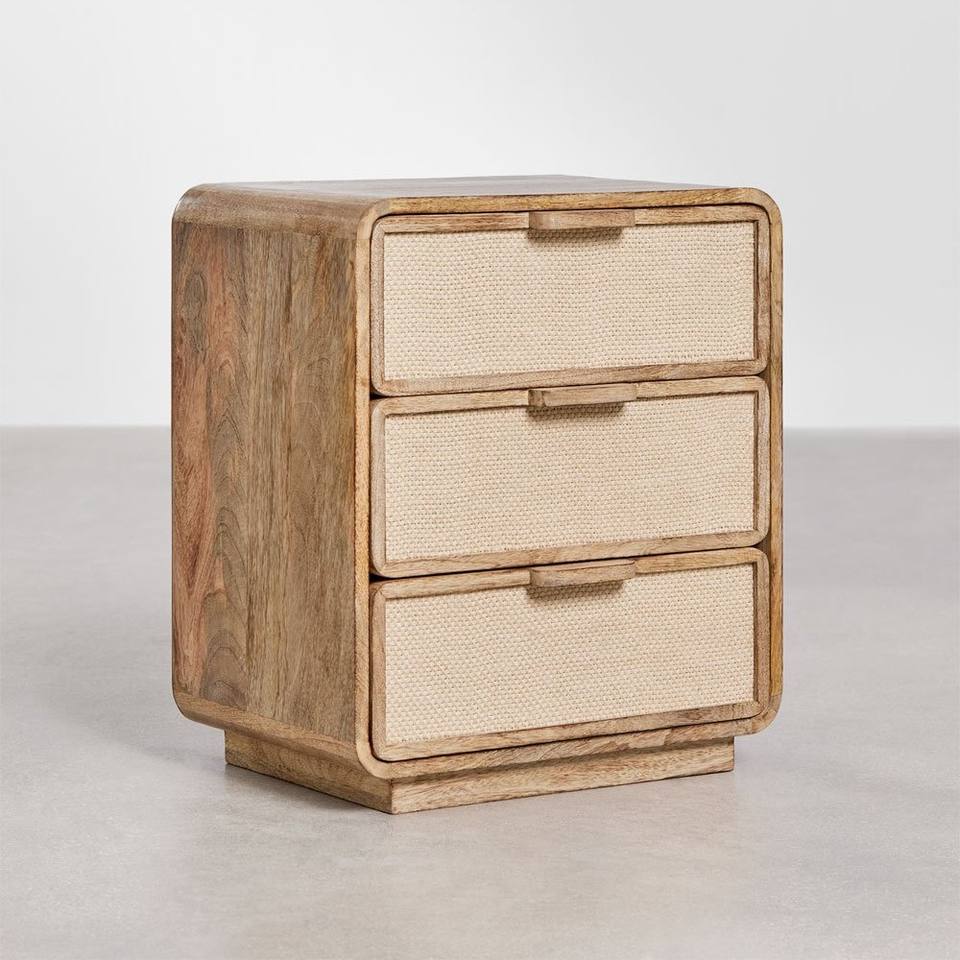 Mesita de noche rectangular Vandana Arion Merino 50x35 cm en madera de mango, MDF y yute Abrams