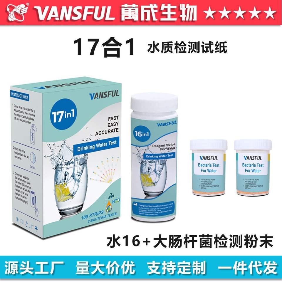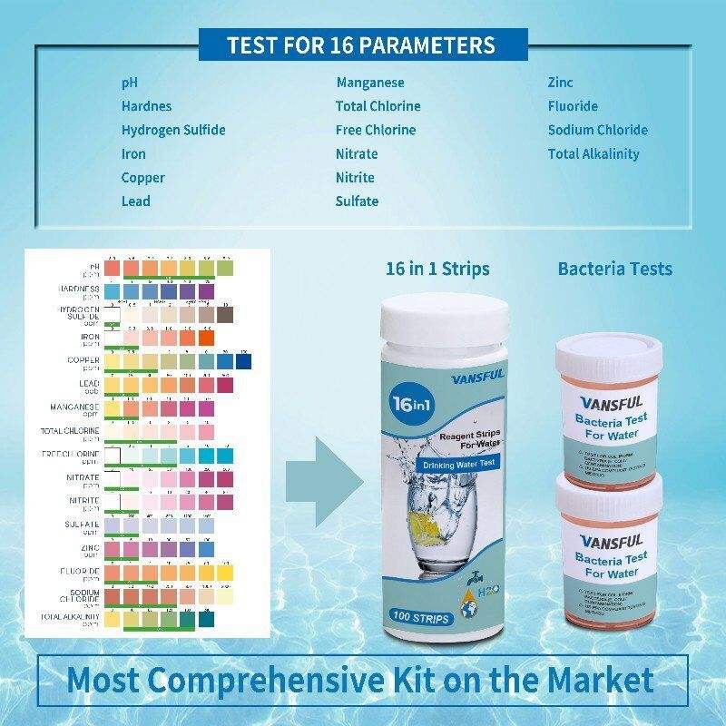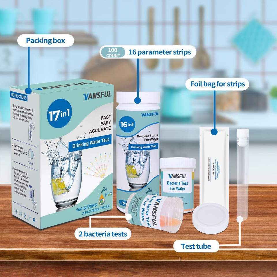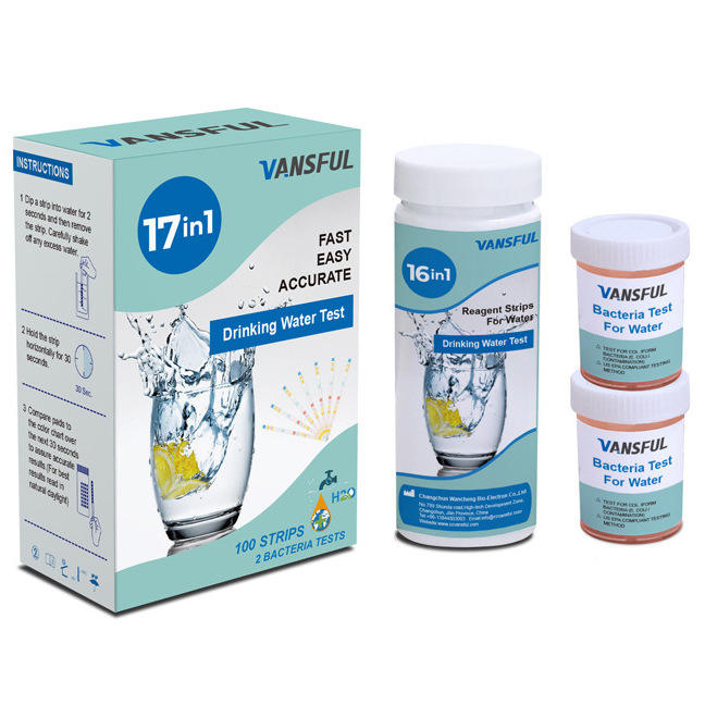 Tiras Reactivas para Análisis de Agua Vansful 17 en 1, 100 Tiras, para Agua Potable, Acuarios, Estanques, Aguas Termales, Uso Industrial