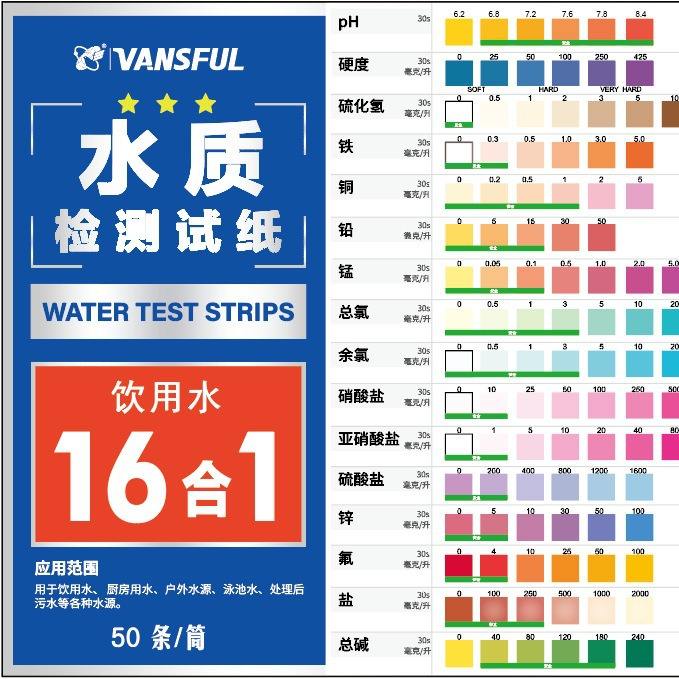 Tiras reactivas de prueba de agua Vansful 16 en 1 para agua potable, 50 tiras por botella