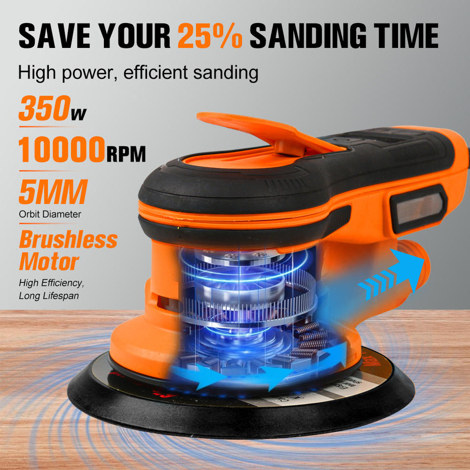 Lijadora Orbital Aleatoria Profesional con Cable y Velocidad Variable para Automóviles, Paneles de Yeso, Madera, Acero, etc.