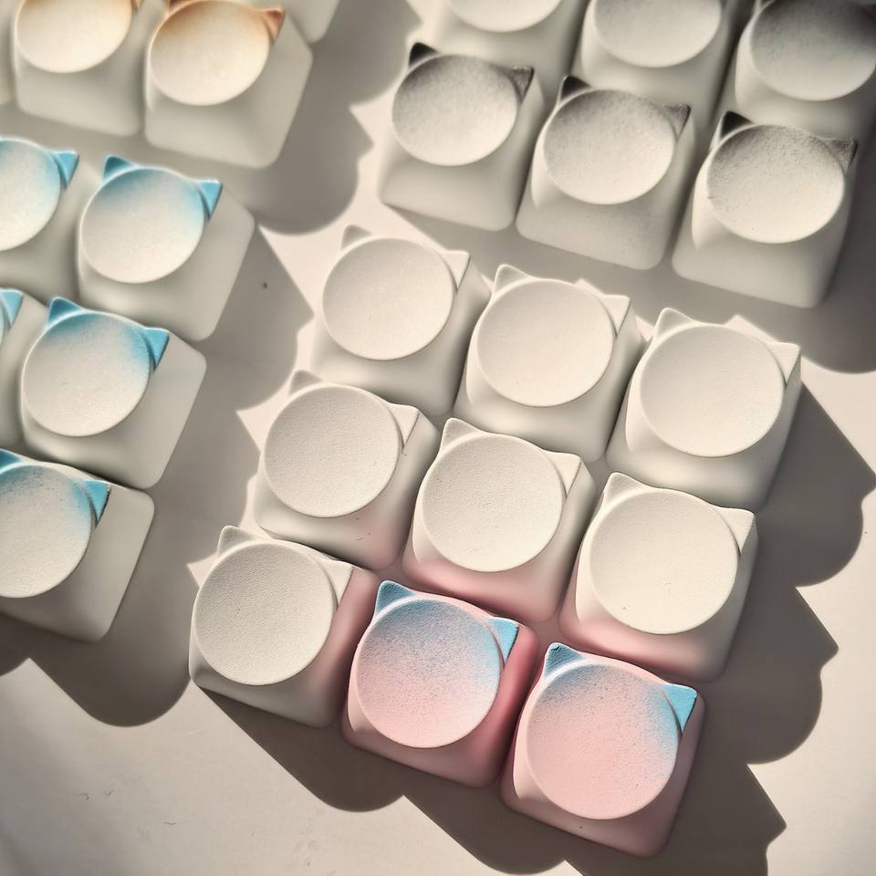 Teclas Transparentes/Blancas/Rosas en Forma de Cabeza de Zorro, Teclas de Repuesto Duraderas para Teclado Mecánico MX Cross, PC/PBT