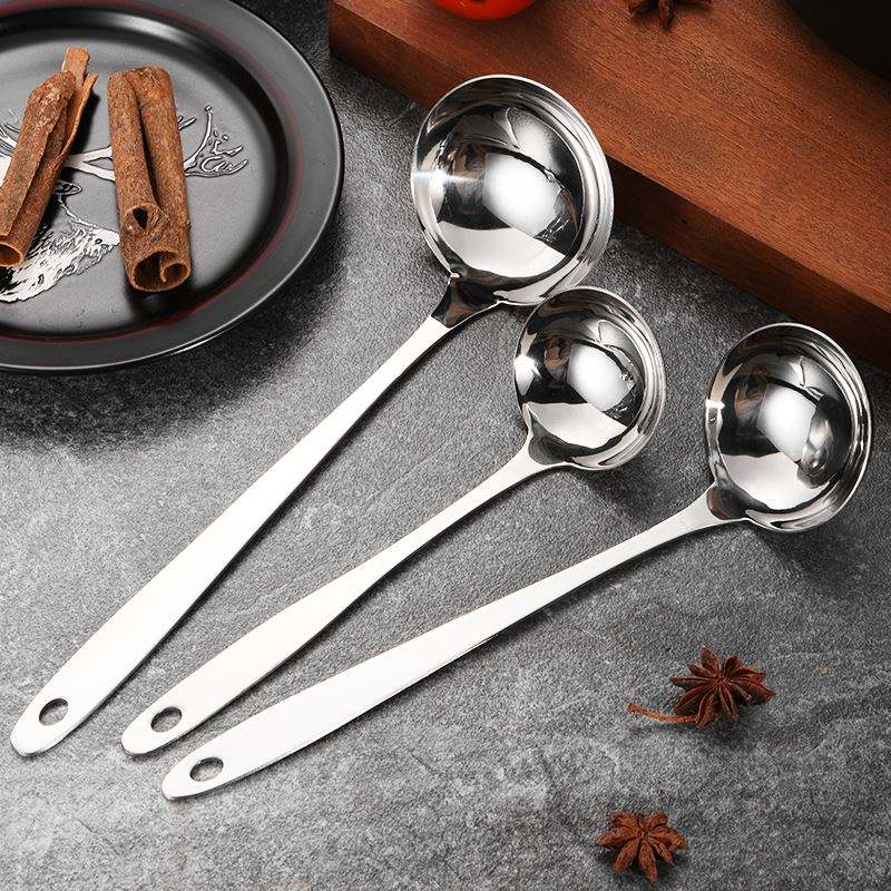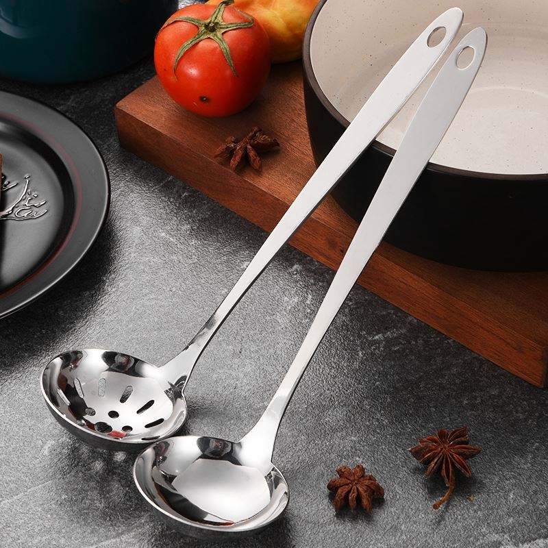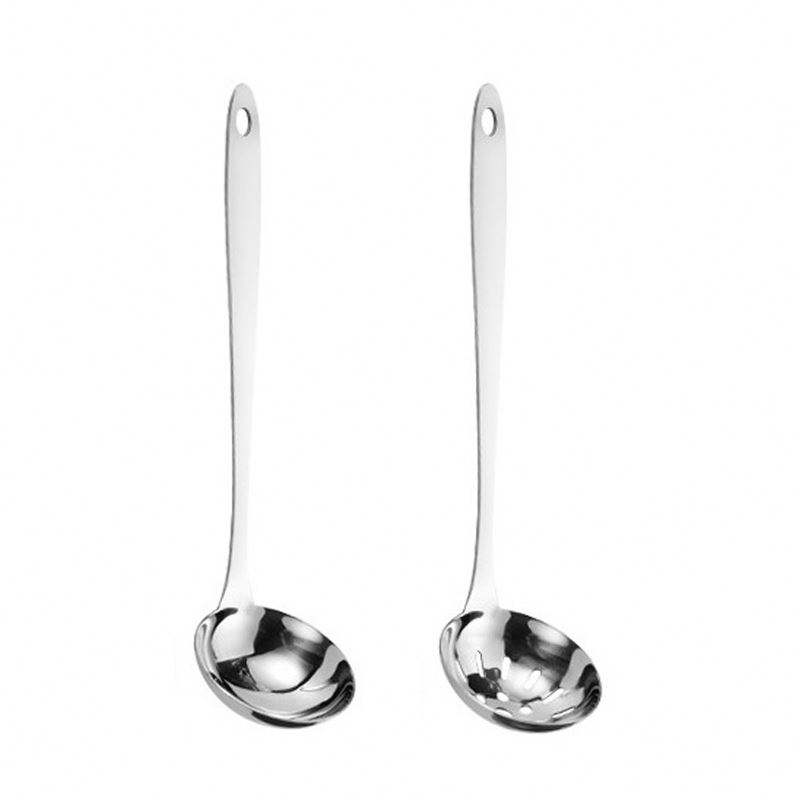 Juego de utensilios de cocina de acero inoxidable duradero y versátil: cucharón, espumadera y utensilios para ollas calientes