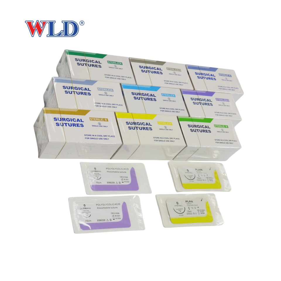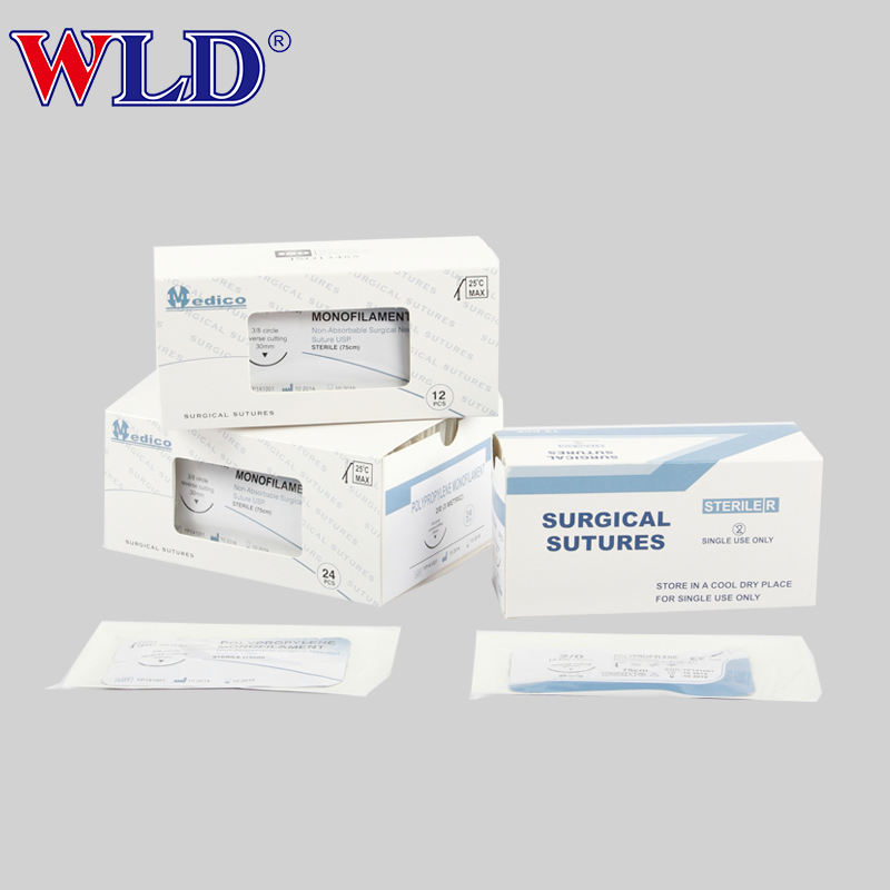 Diversos tipos de suturas quirúrgicas absorbibles o no absorbibles para humanos
