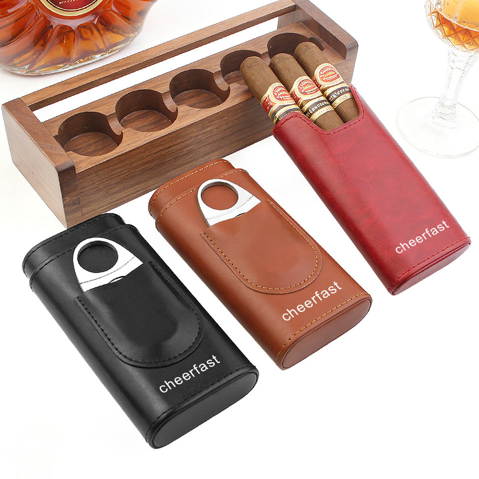 Estuche de viaje ajustable para cigarros de cuero PU de 3 unidades