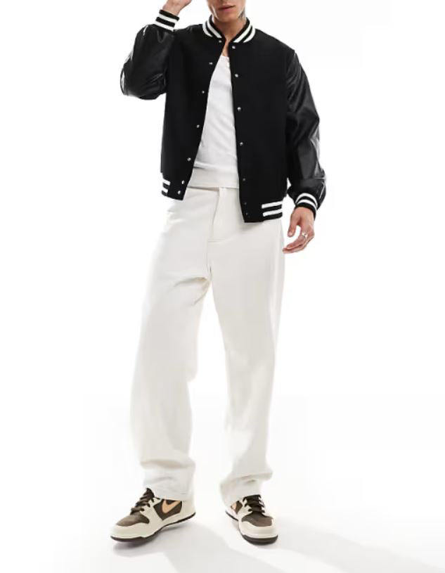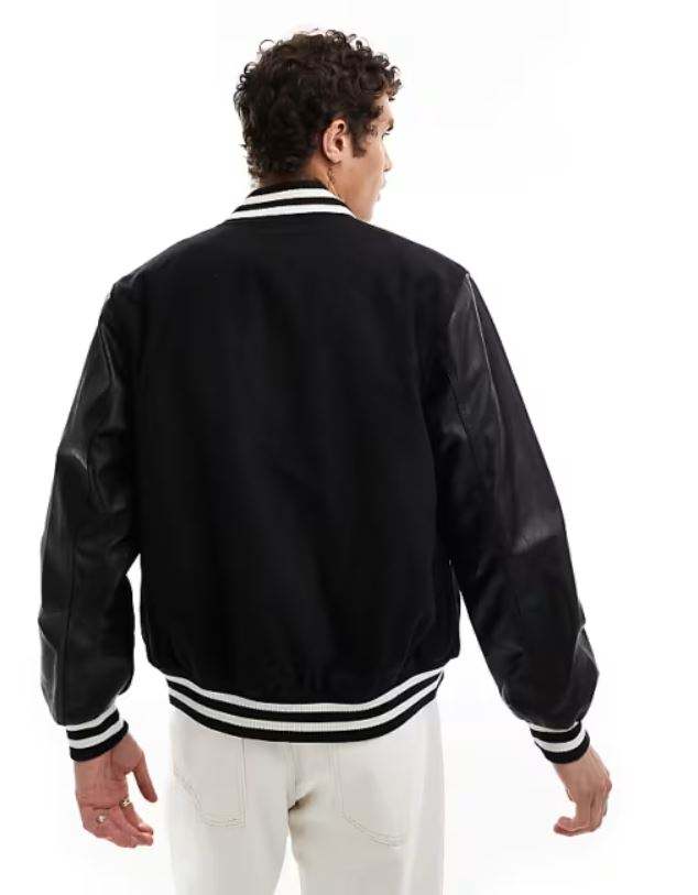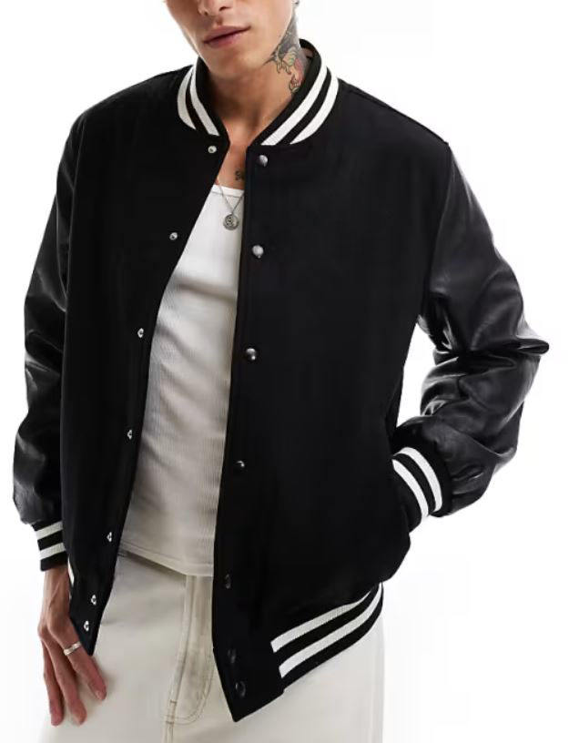 Chaqueta Varsity para hombre, chaqueta Bomber de diseño personalizado, Mangas de cuero, bordado de chenilla, chaqueta universitaria de béisbol Letterman Varsity
