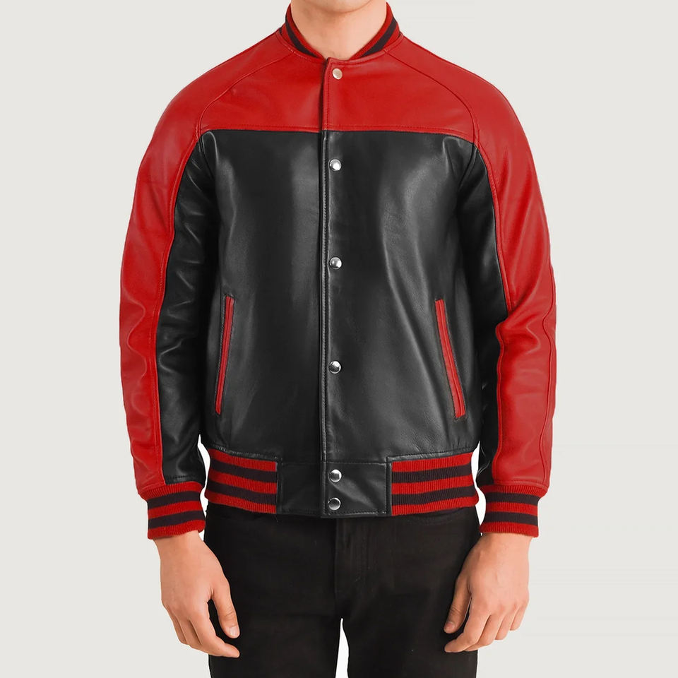Chaqueta Varsity Holgada Informal de Poliéster, Estilo Regular OEM, Chaqueta de Béisbol con Mangas de Cuero, Chaqueta Personalizada de Moda con Cuello Alto para Hombre