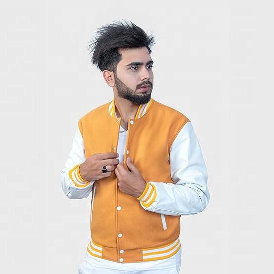 Chaqueta universitaria Chaqueta de lana Mangas de cuero real Baloncesto Letterman College Bomber Chaqueta de lana y genuina unisex hecha a medida