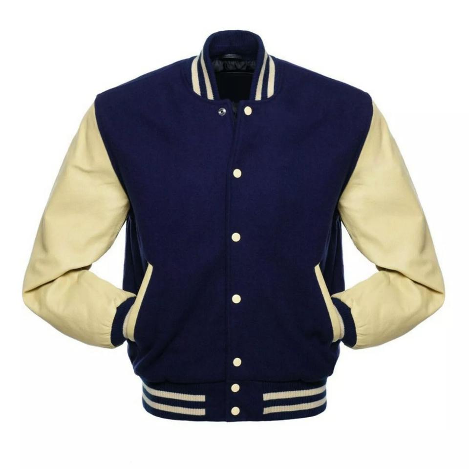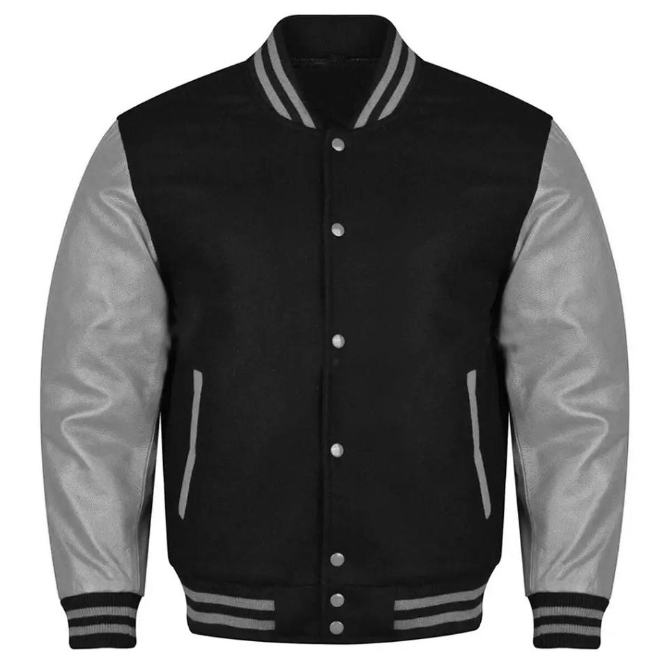 Chaqueta Varsity Letterman de cuero de lana para hombre con cuello vuelto, bolsillos con botones, chaqueta High Street CollegeBaseballjacket para hombre