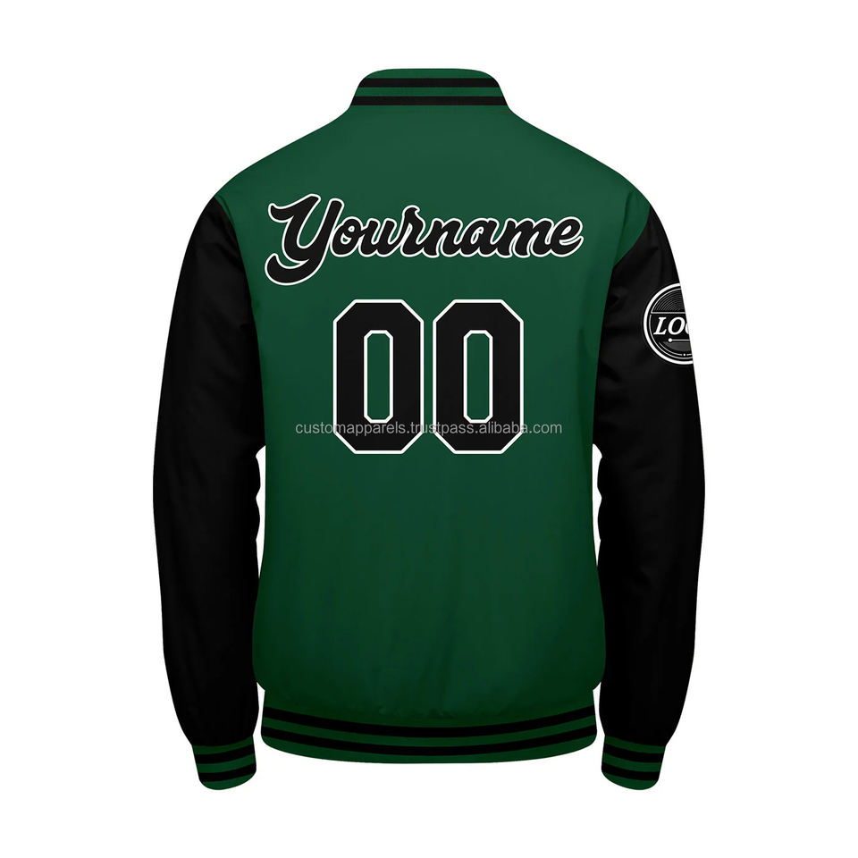 Chaqueta Varsity Personalizada y Elegante, 100% Lana, Resistente al Viento, Transpirable, con Cuello Alto, Iniciales Bordadas en la Parte Delantera, Logotipo Personalizado
