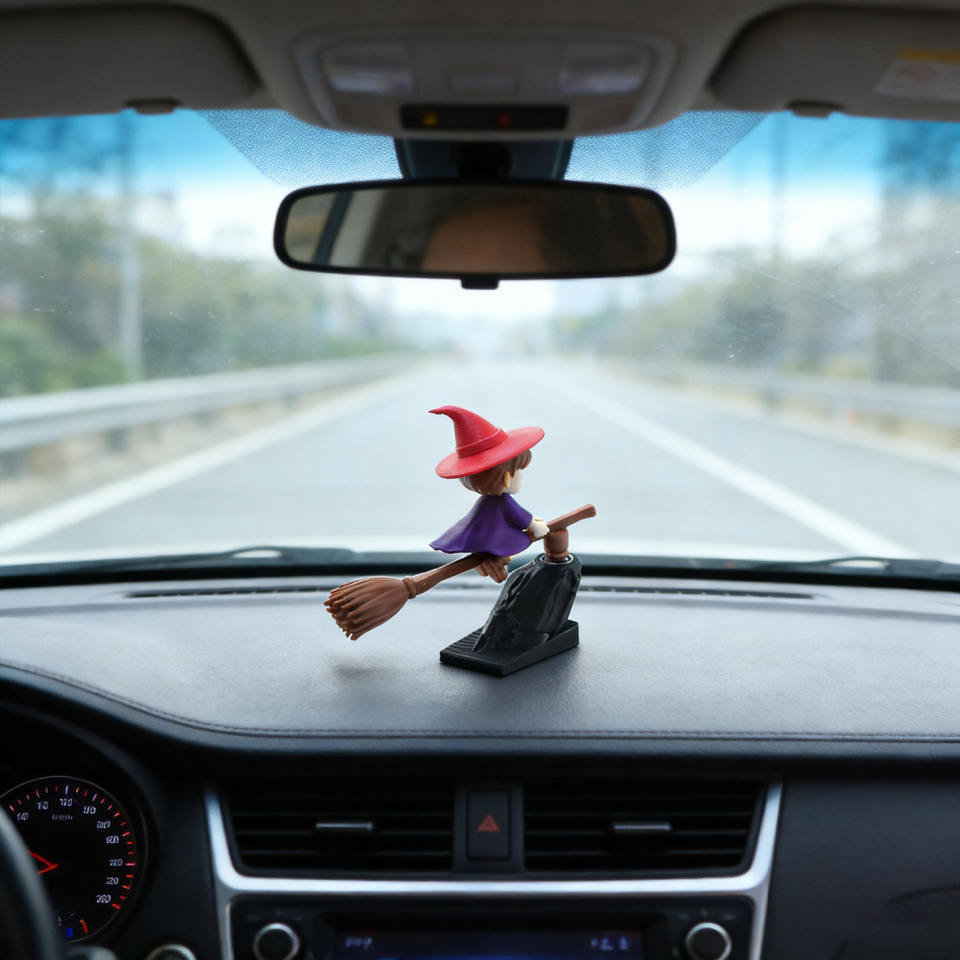 Vashine Adorno de Coche de Bruja Voladora de Dibujos Animados Impreso en 3D, Juguetes Divertidos de Bruja Oscilante para Decoración de Coche