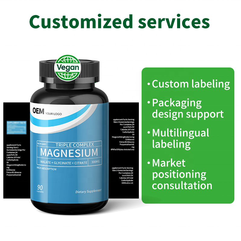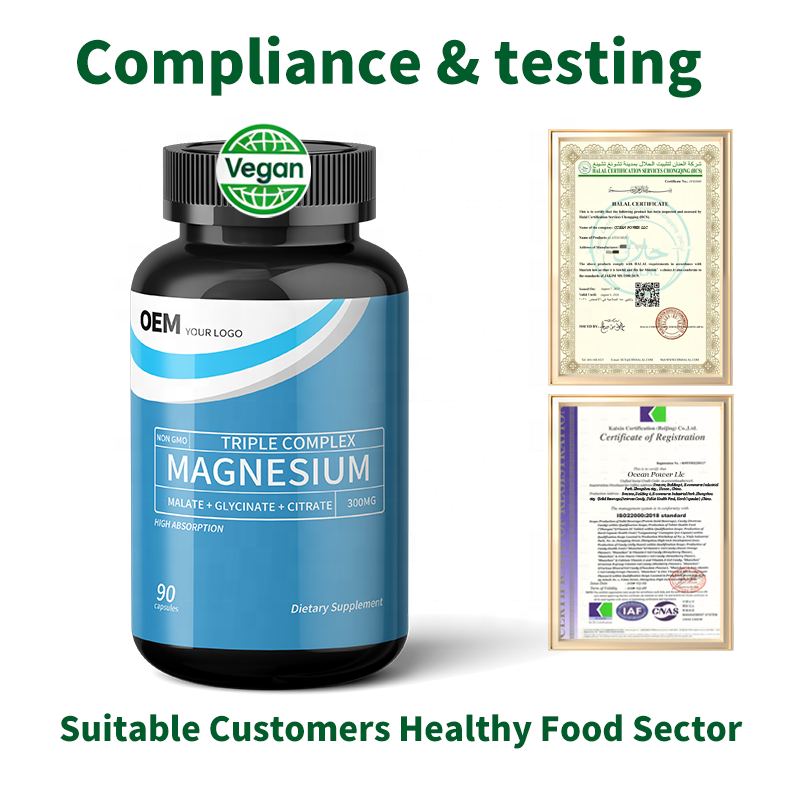 Cápsulas Veganas de Complejo Triple de Magnesio, Misma Fórmula, Diferentes Cápsulas, Aptas para el Mercado de la UE, para Mercados de Demanda Especial