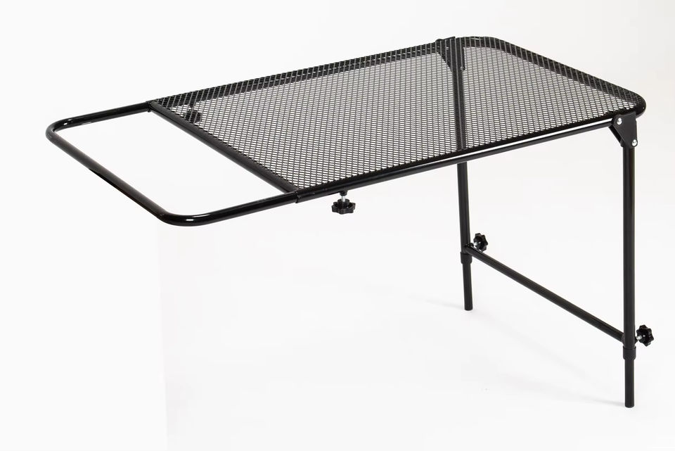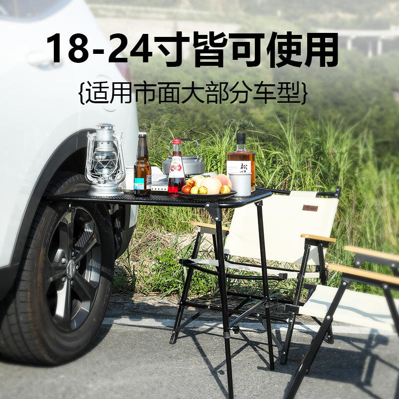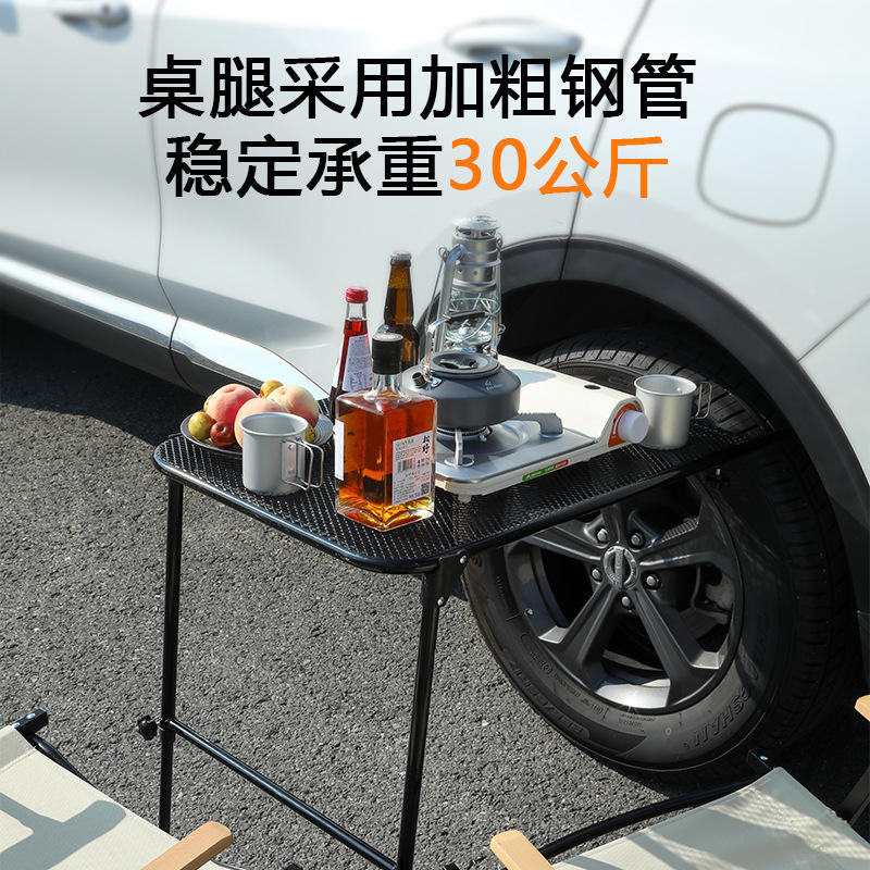Mesa de coche para vehículos montada en el vehículo Mesa de trabajo de acero para acampar, viajes, tailgating y al aire libre, negro mate