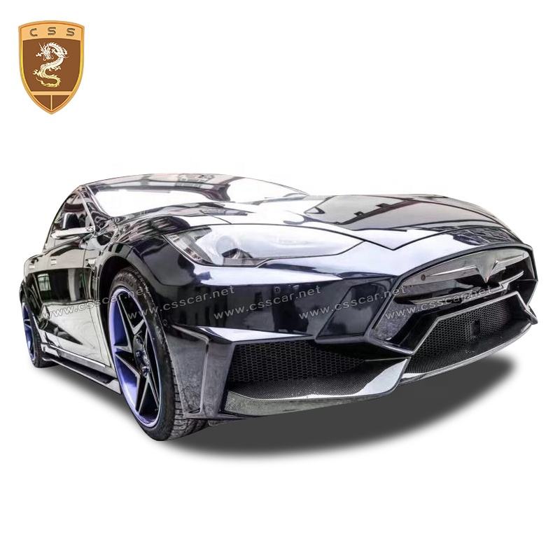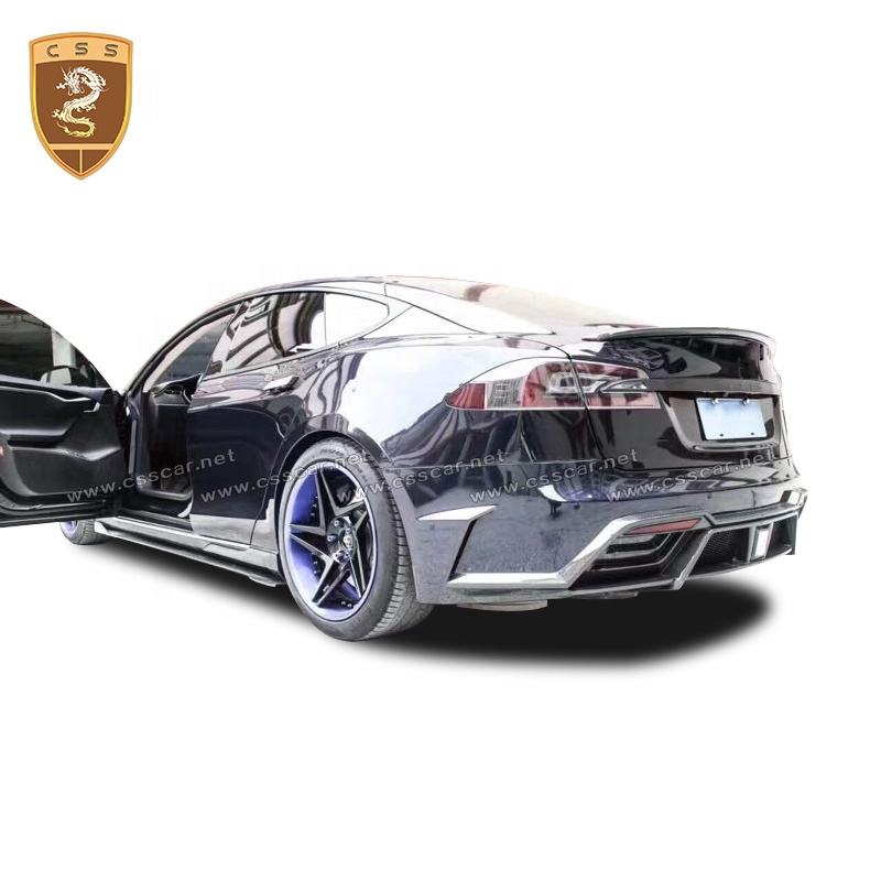Kit de carrocería para modificación de vehículo, alerón lateral de parachoques delantero y trasero de fibra de carbono, estilo artístico, para Tesla Model S