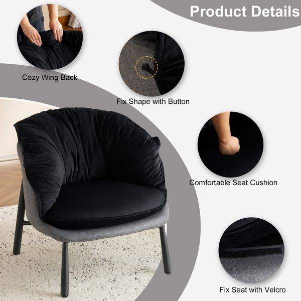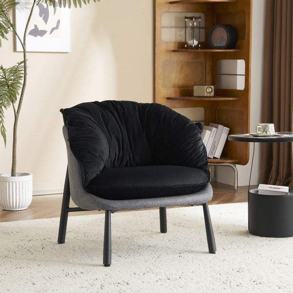 Silla decorativa de terciopelo con patas de metal, sillón moderno y cómodo para leer para sala de estar, dormitorio, sala de estudio, oficina en casa, negro
