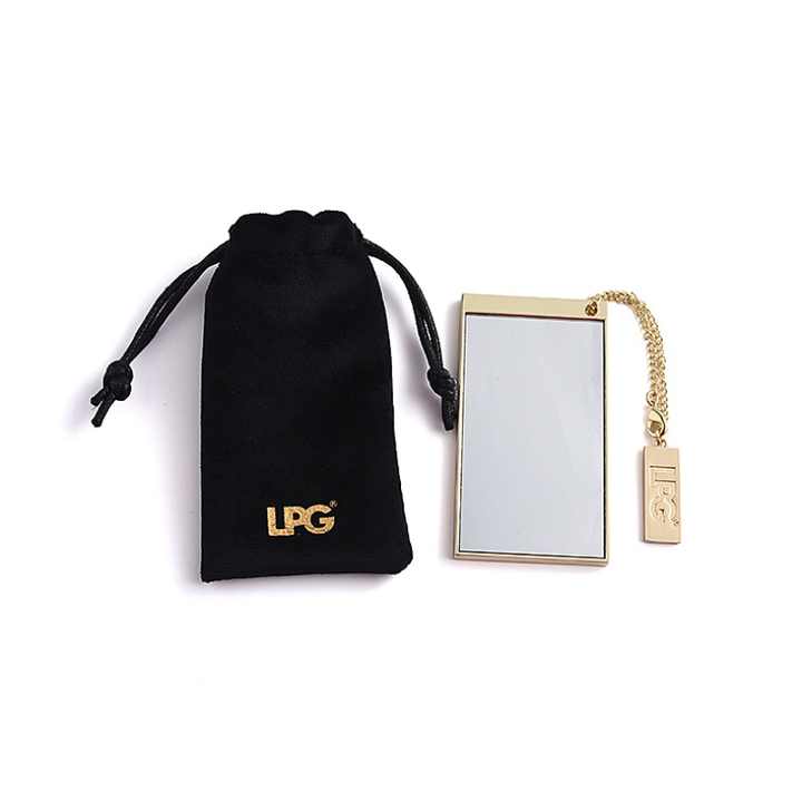 Bolsa de Terciopelo con Espejo Cosmético Compacto, Chapado en Oro, Tamaño de Bolsillo, con Colgante, Iluminado, de Doble Cara
