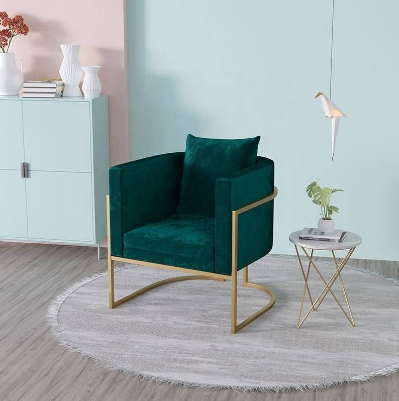 Silla de comedor de terciopelo, silla decorativa de espalda media, sillón de ocio moderno con patas chapadas en oro, silla tapizada para sala de estar