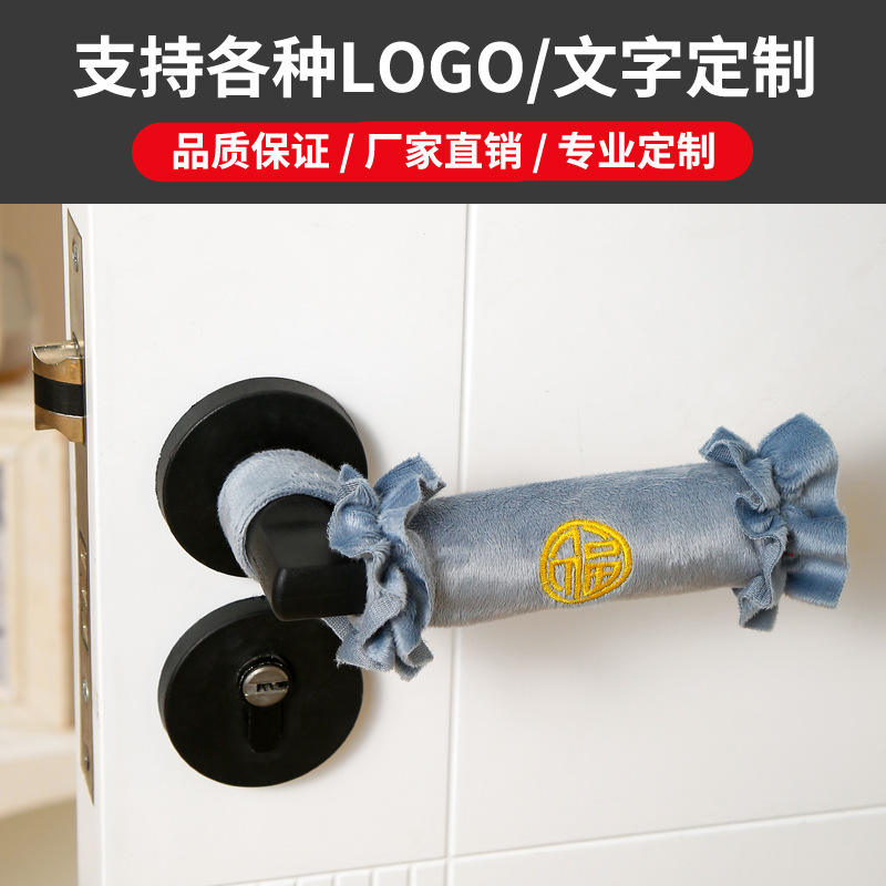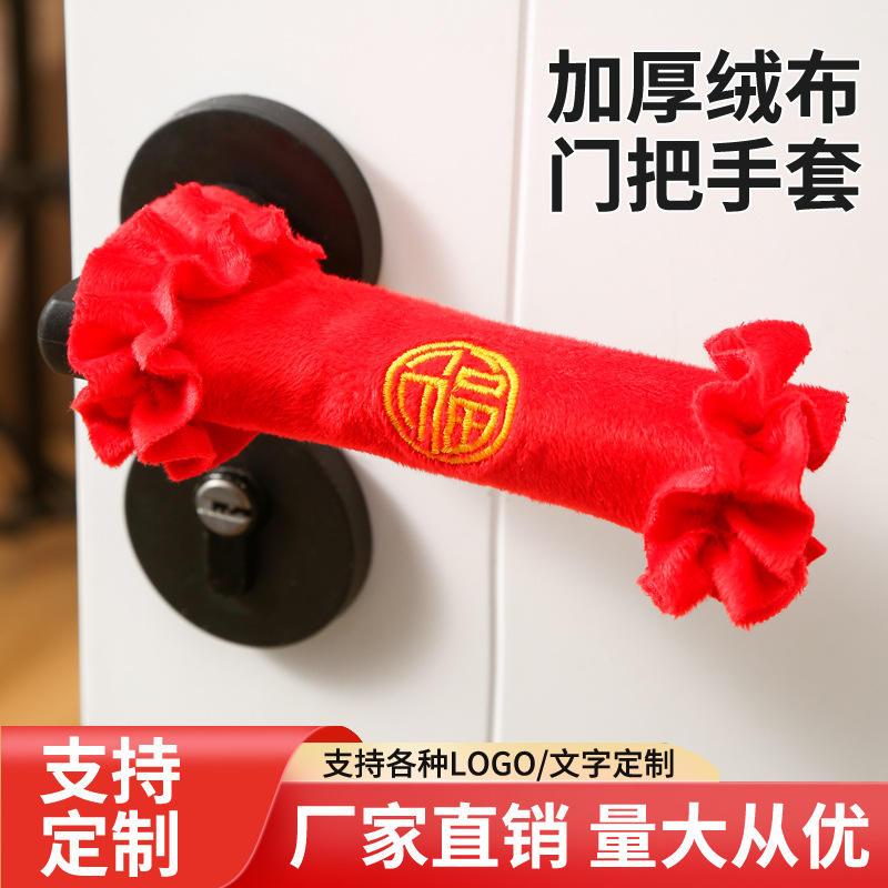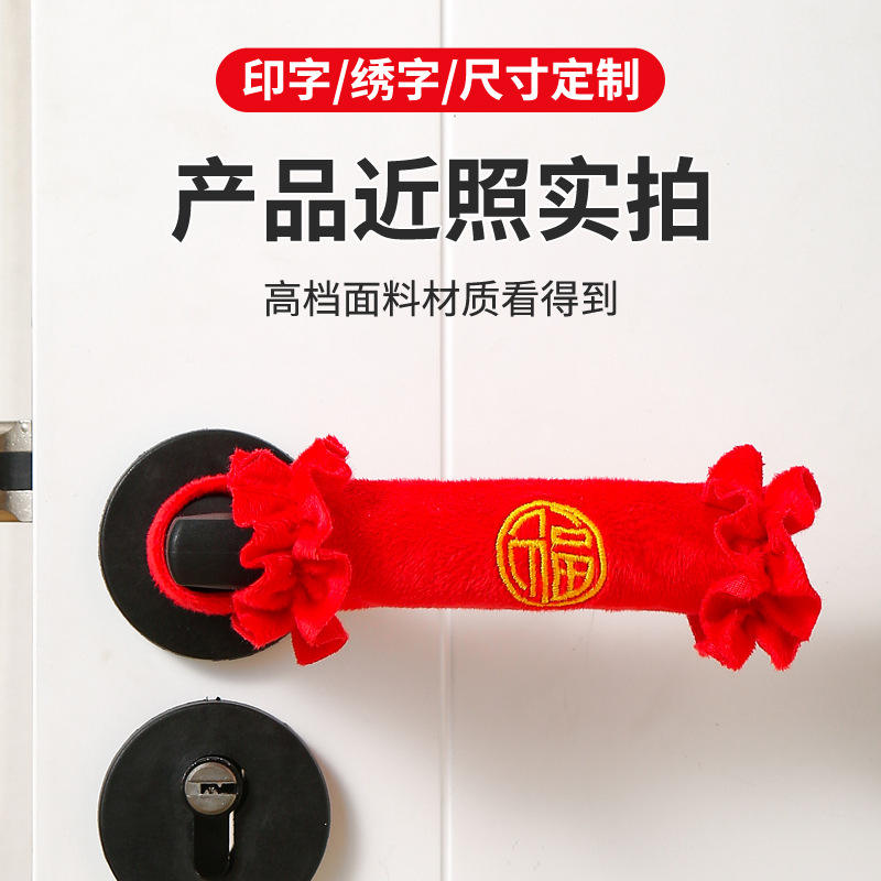 Cubierta de terciopelo para manija de puerta, color rojo, con característica Fu bordada, para puerta de entrada, fácil instalación, material de espuma de poliuretano