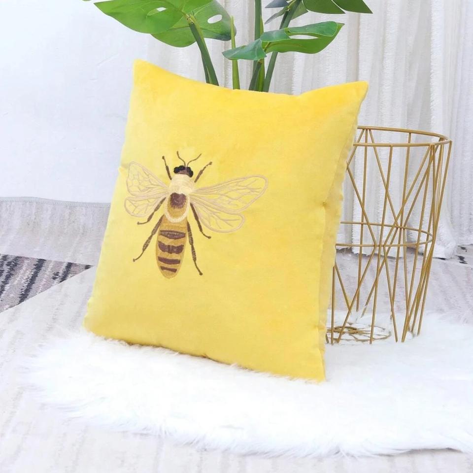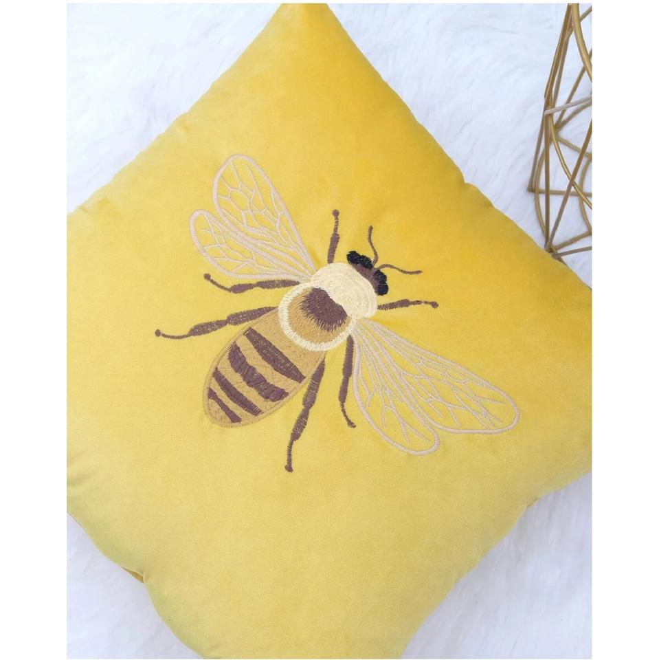 Fundas De Almohada bordadas con máquina de diseño de abeja de miel de terciopelo, funda de cojín suave para el hogar, Hotel, restaurante, decoración, tarifa al por mayor