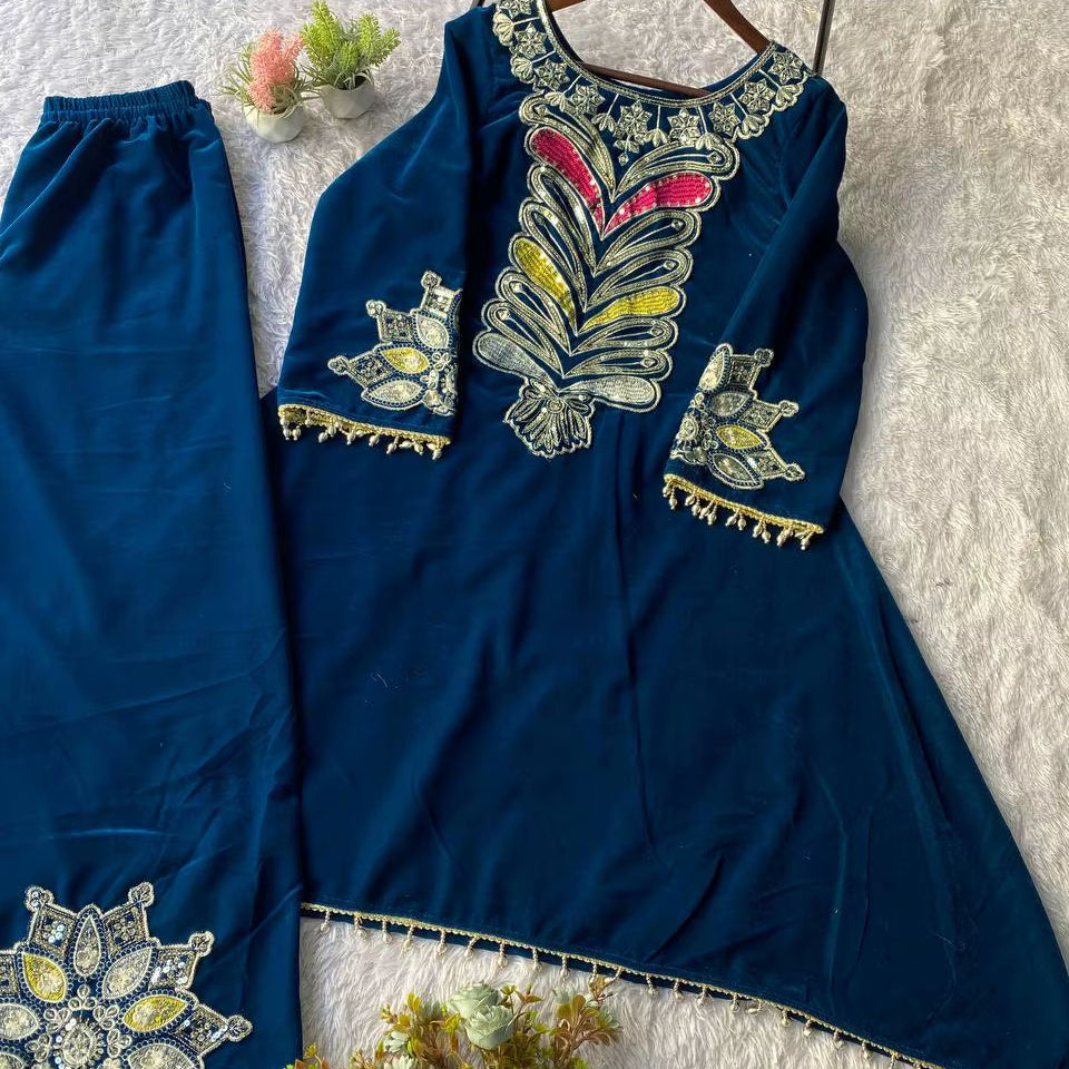 Conjunto de Top y Pantalones Plazzo con Bordado de Lentejuelas y Terciopelo, con Micro Costuras Internas Completas, Tallas M, L, XL y XXL para Mujer