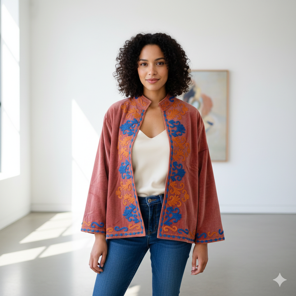 Nombre del producto:Chaqueta de Terciopelo para Mujer con Bordado Suzani