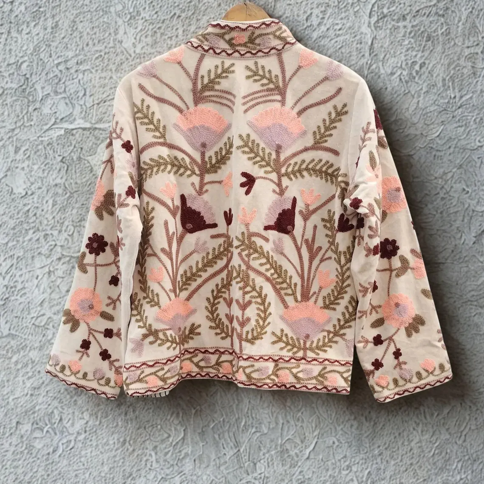 Abrigo Corto Suzani de Terciopelo para Mujer | Bata Kimono Suzani de Terciopelo Bordado | Chaqueta Bomber Urbana