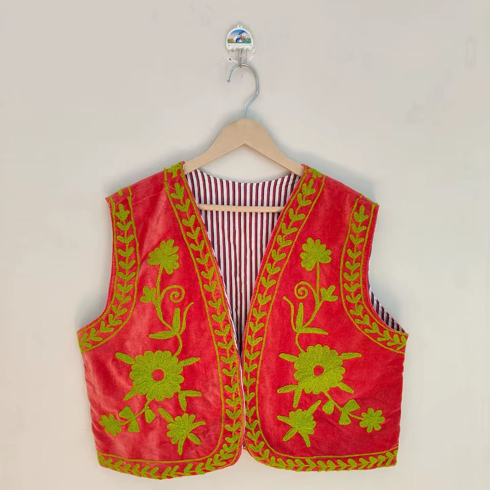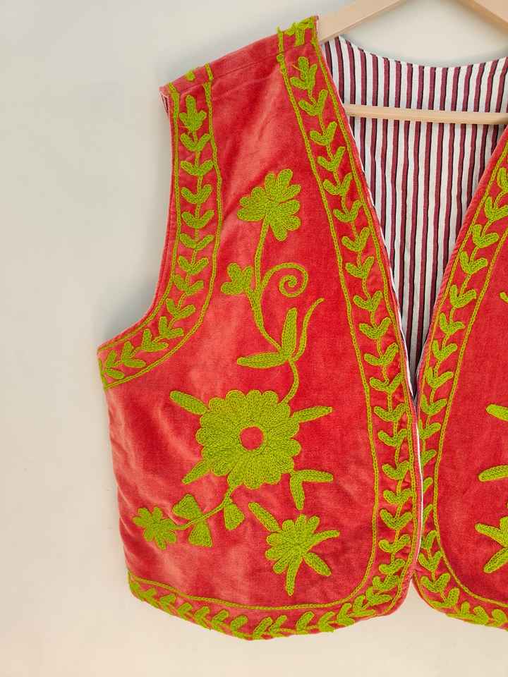 Chaleco de Terciopelo Bordado a Mano, Chaleco de Terciopelo Hecho a Mano, Chaqueta, Chaleco Bordado a Mano con Diseño Suzani, Chaleco de Terciopelo Bohemio con Estampado Floral, Chaleco de Algodón