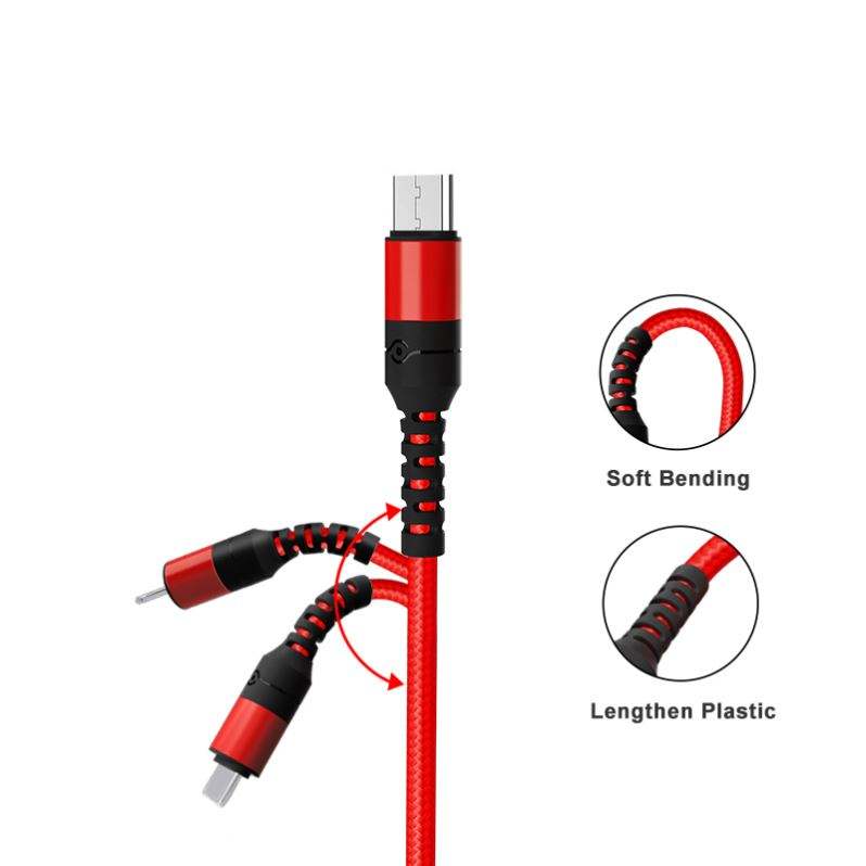 Vendedor nuevo diseño 1 metro 2 metros personalizado Teléfono celular Carga 3 en 1 Cargador de teléfono 3 en 1 cable USB