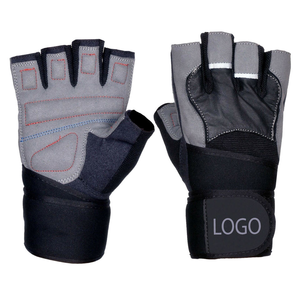 Guantes de entrenamiento ventilados con palma completa para Fitness Logo Levantamiento de pesas Guantes de gimnasio hechos de cuero para deportes