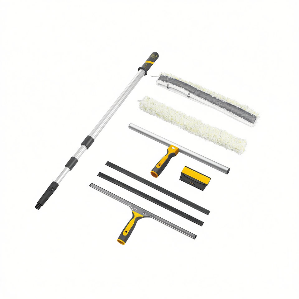 Diseño de squeegee de bloqueo superior: Asegura una sujeción segura de la hoja y una presión constante para una limpieza suave y uniforme en grandes áreas de vidrio.