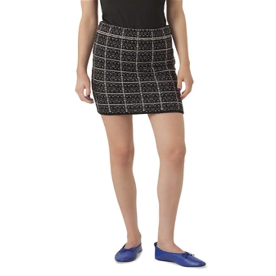 Minifalda de Lino y Mezclilla Vero Moda, Negra, con Pliegues Tipo Lápiz, Diseño de Vendaje, Lentejuelas y Volantes Estampados, Talla XS, Estilo Formal Corto y Suave