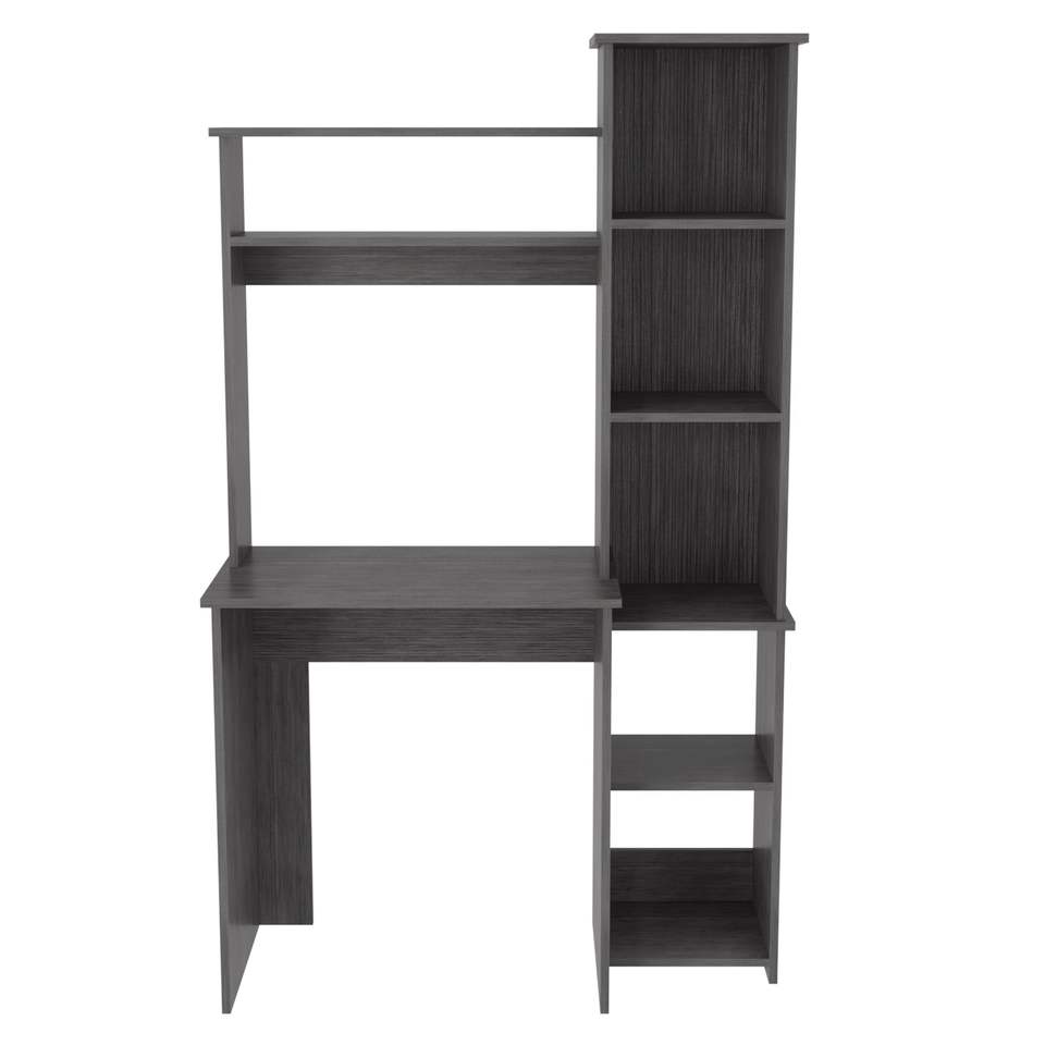 Escritorio Versalles Smokey Oak para ordenador con dos estantes superiores y cinco cubículos