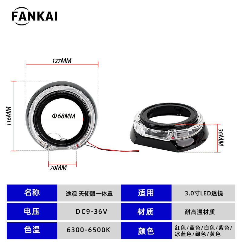 Cubierta Decorativa Versátil de 3 Pulgadas con Ojo de Ángel para Faros Delanteros de Automóviles, Guía de Luz Integrada, Lente Bi-xenón, Parasol LED de Plástico