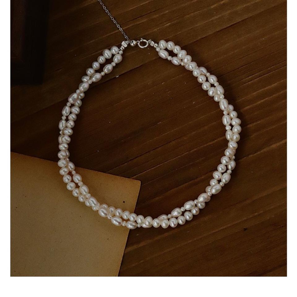 Collar de Cadena de Clavícula de Plata S925 Versátil de Estilo Barroco para Mujer con Encaje Natural, Gargantilla de Doble Capa, Elegante Collar de Perlas