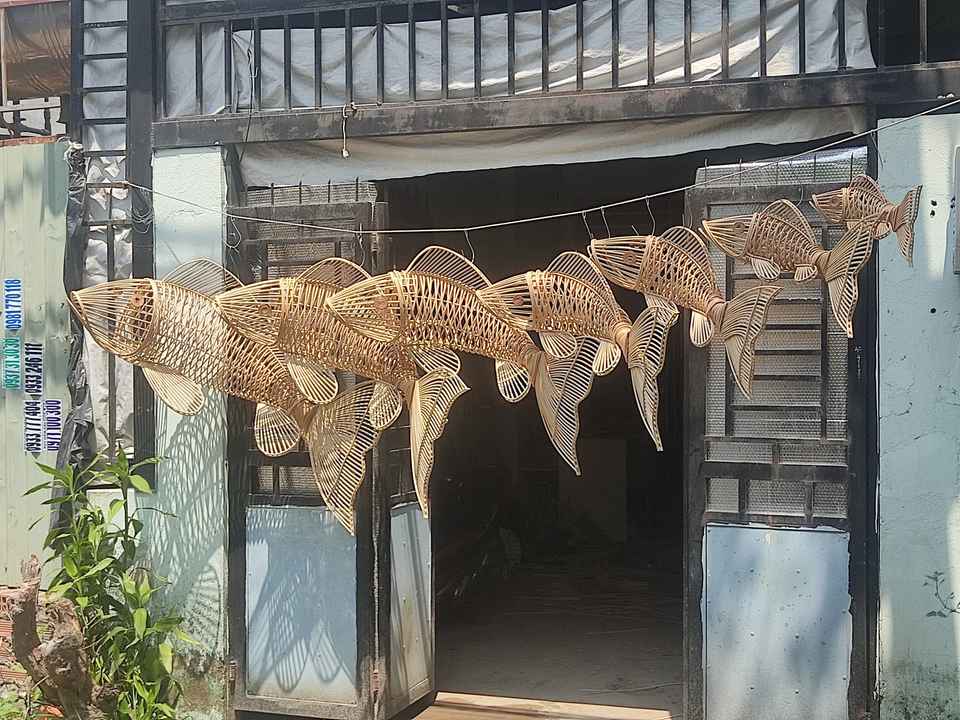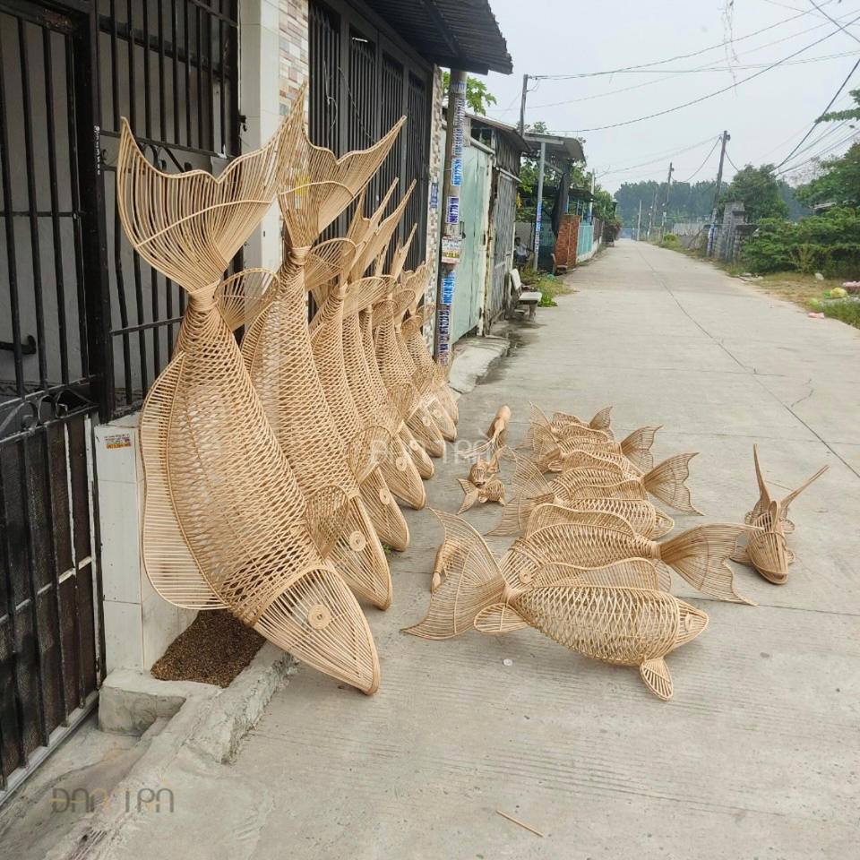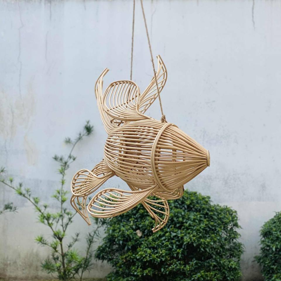 Lámpara de bambú con forma de pez versátil para decoración del hogar bonitas artesanías estilo Vintage para Decoración